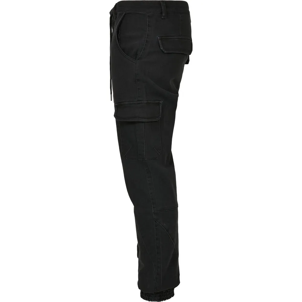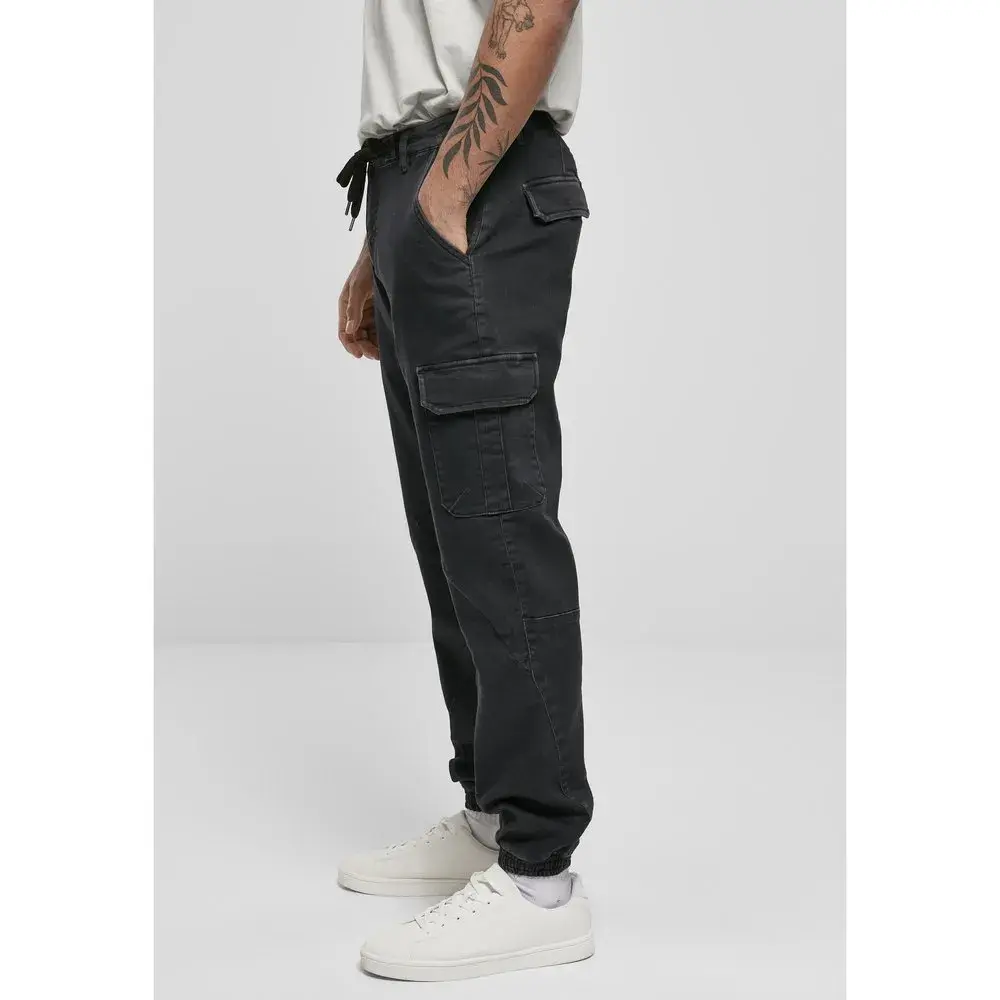 Эти мужские спортивные брюки представляют собой удачный модный микс, вдохновлённый знаменитым стилем карго. Брюки имеют характерные накладные карманы на бедрах, сзади и по бокам, а также пояс со шлёвками для ремня, кулиской и застёжкой-молнией. Брючины джоггеров Urban Classics заканчиваются удобными эластичными манжетами. Крой классический. Материал – функциональная смесь хлопка, полиэстера и эластана. Внешний материал 1: 74% хлопок, 24% полиэстер, 2% эластан, джинсовая ткань плотностью 8 унций. Подкладка 1: 60% хлопок, 40% эластан, бязь, плотностью 150 г/м².