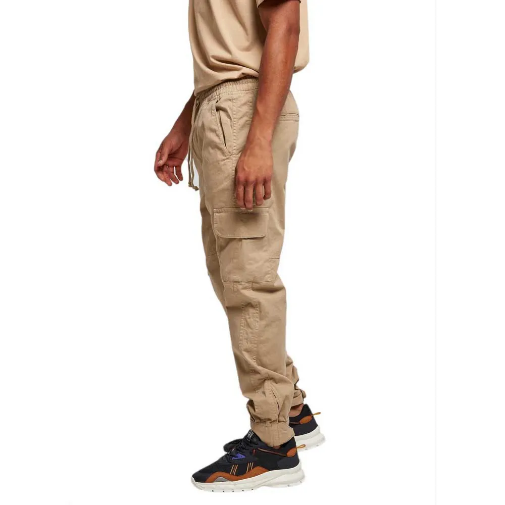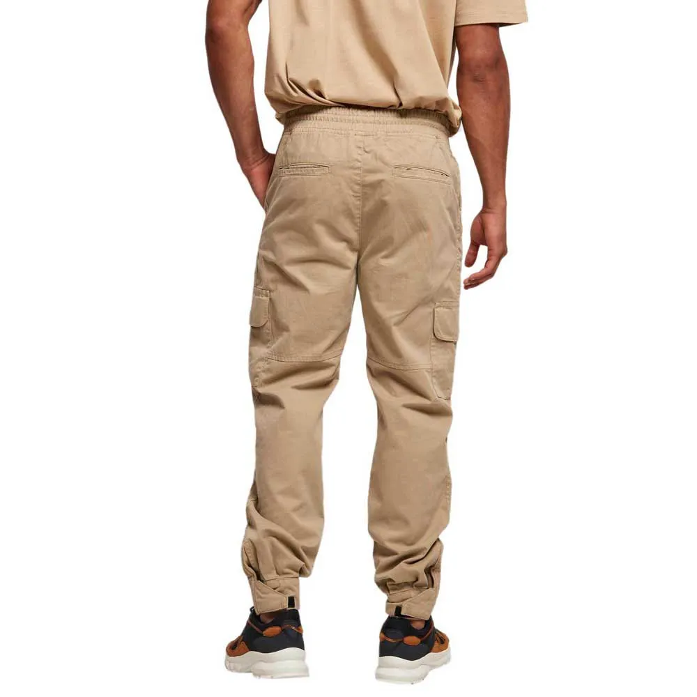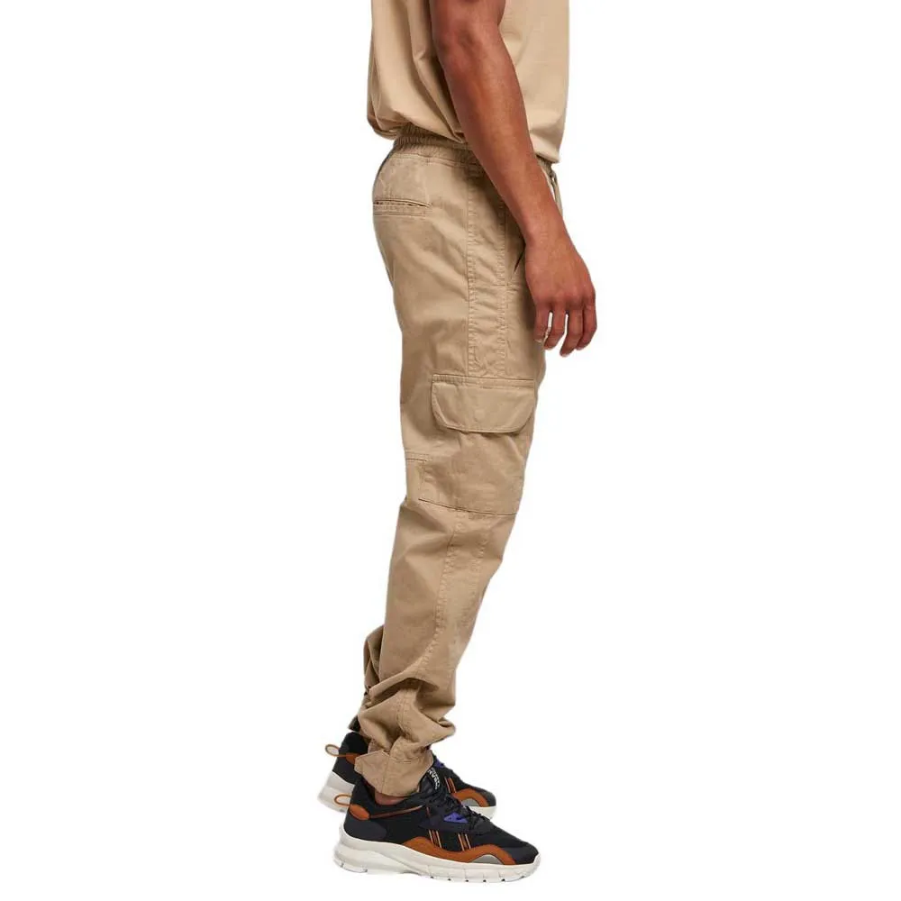 Брюки оснащены двумя накладными карманами-карго с клапанами на металлических кнопках, а также боковыми и задними карманами.