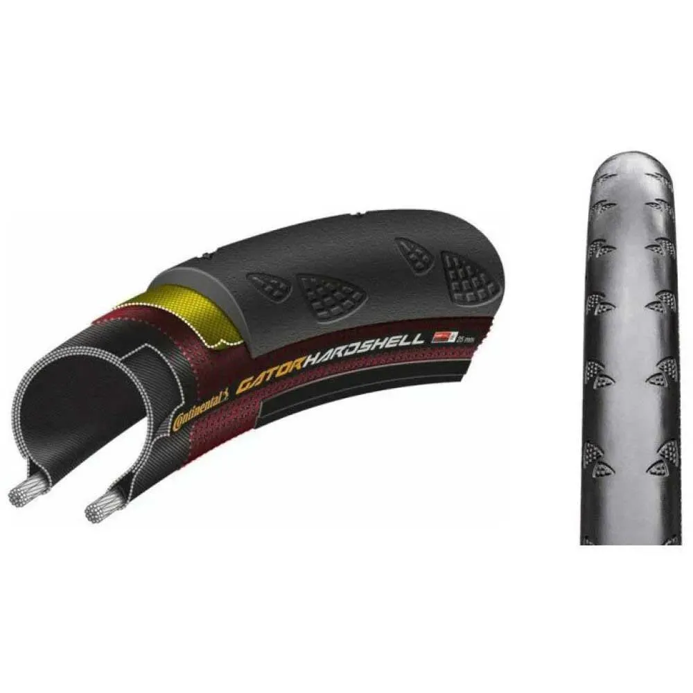 Шина CONTINENTAL Gator Hardshell с защитой от проколов, черная/оболочка Dura, 3/180TPI, устойчивая к проколам, выносливая, для неровных поверхностей или открытых асфальтовых грунтов благодаря непрерывной работе Hardshell ProTection, идеально подходит для большого пробега и долговечности.