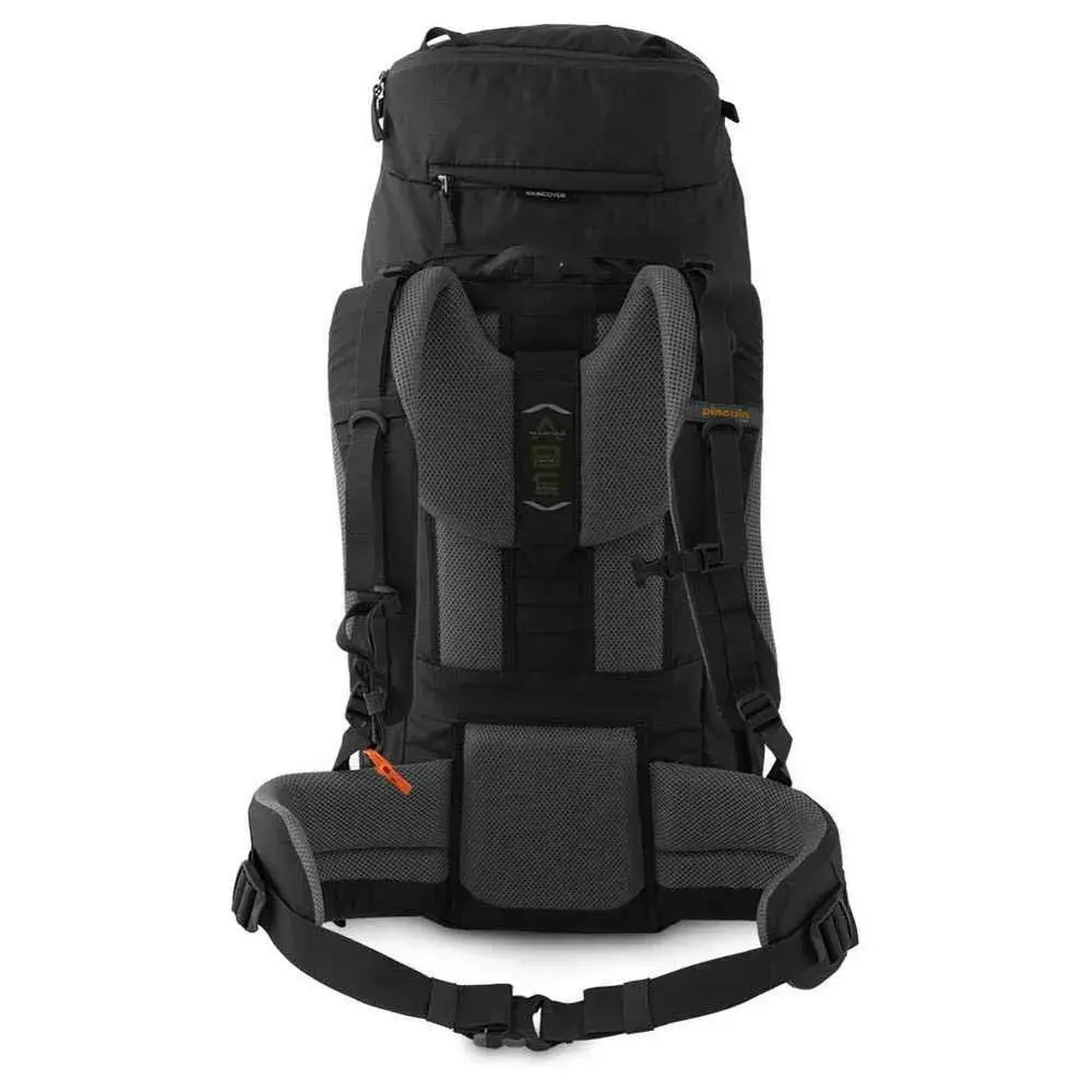 - Спинка рюкзака усилена парой дюралюминиевых усилителей и пластиной из HDPE, что помогает распределить вес перевозимого груза и устраняет давление перевозимых предметов на спину.