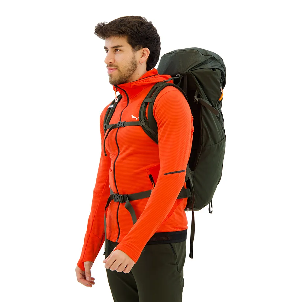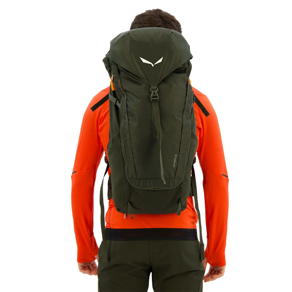 - Alp Mate имеет как отверстие для верхней загрузки с крышкой, так и U-образную молнию спереди, которая позволяет быстро найти свое снаряжение, где бы оно ни находилось внутри рюкзака — больше никаких отчаянных поисков. Со встроенным дождевиком, несколькими вариантами крепления и подготовкой для питьевой системы.