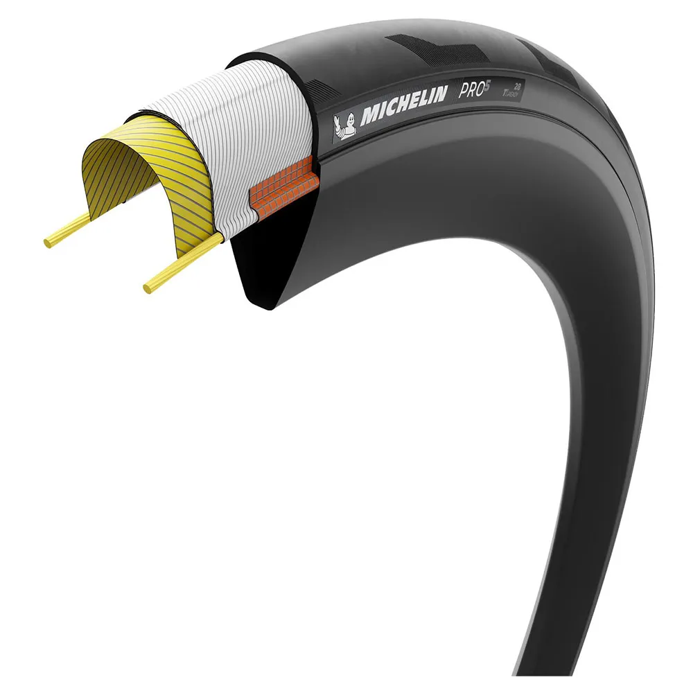 Ощутите преимущества бескамерной технологии с MICHELIN Pro 5. Оцените улучшенное сопротивление качению, улучшенную защиту от проколов и более комфортную езду благодаря возможности использования более низкого давления в шинах.