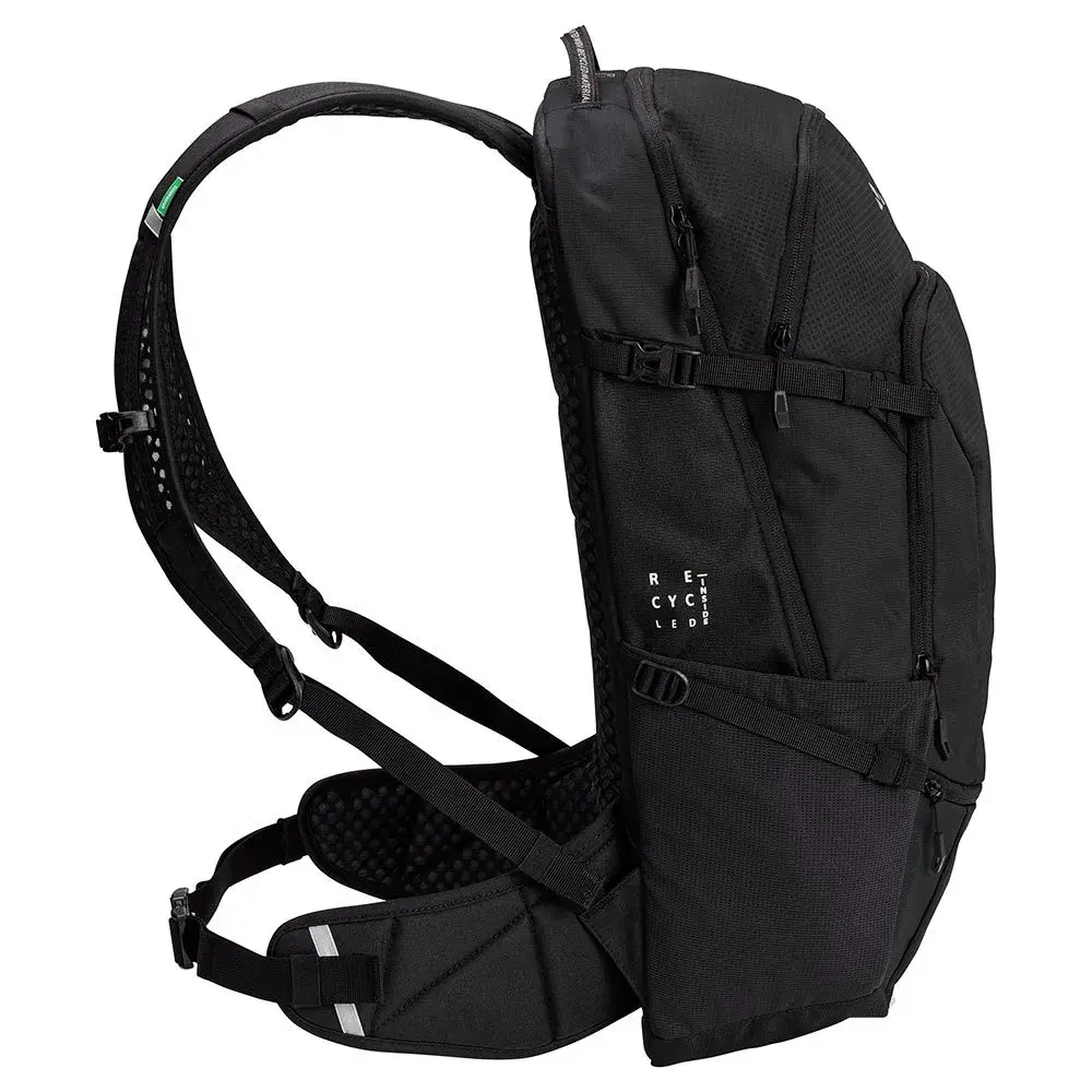 Рюкзак для горного электровелосипеда, отдельный отсек для запасного аккумулятора, гибкое съемное отделение для питьевой системы, экологически чистое производство, изготовлено в основном из переработанных материалов.