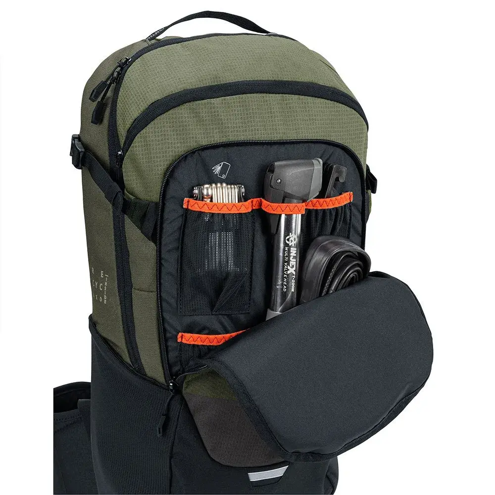 Технически эндуро-рюкзак с дышащей и эргономичной системой подвески, полной функций, включая дождевик из переработанных материалов и экологически чистое производство.