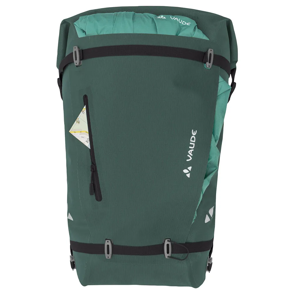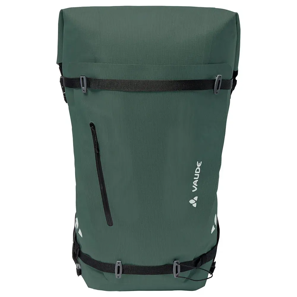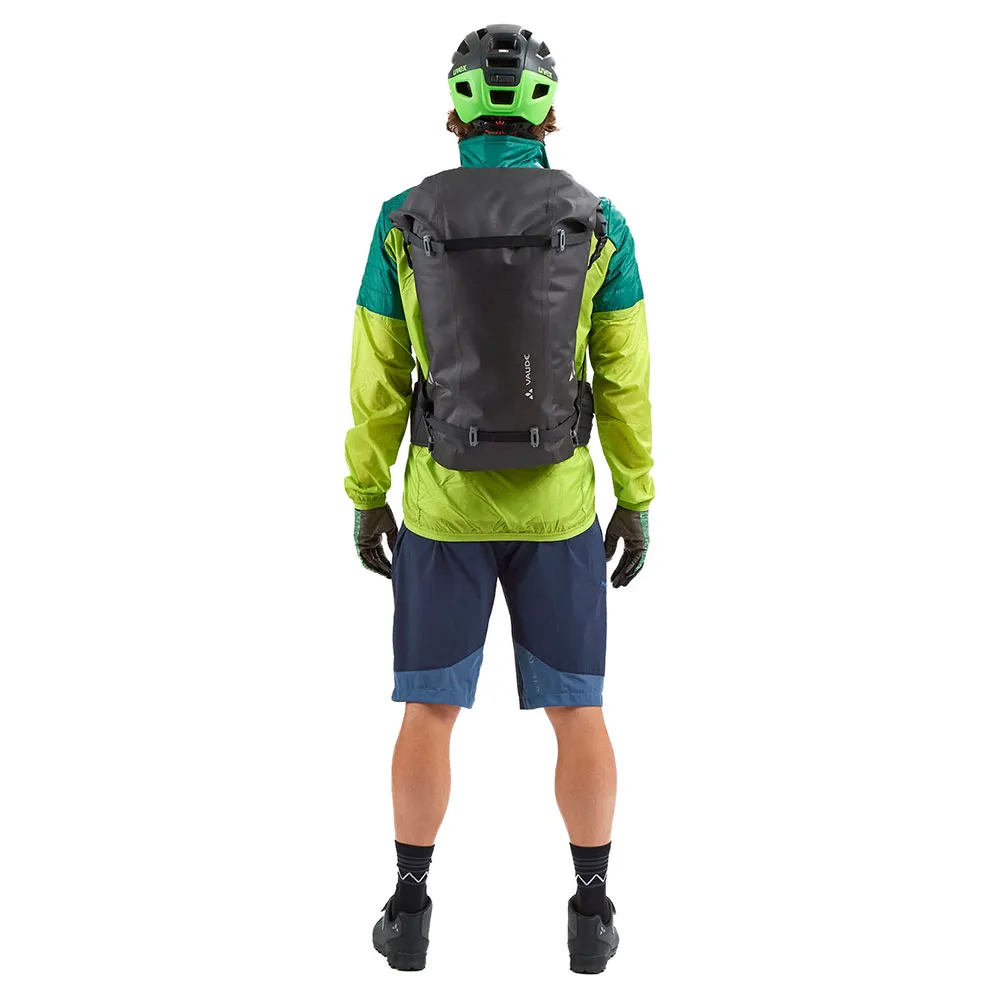 водонепроницаемый застегивающийся клапан, основное отделение со встроенным отделением для ноутбука (35 x 28 x 3 см) и вставными сетчатыми карманами, съемный карман на молнии для ценных вещей, съемный верхний компрессионный ремень, мягкий поясной ремень с карманом, держатель для шлема с возможностью дополнительной упаковки, светоотражающий логотип для лучшей видимости.