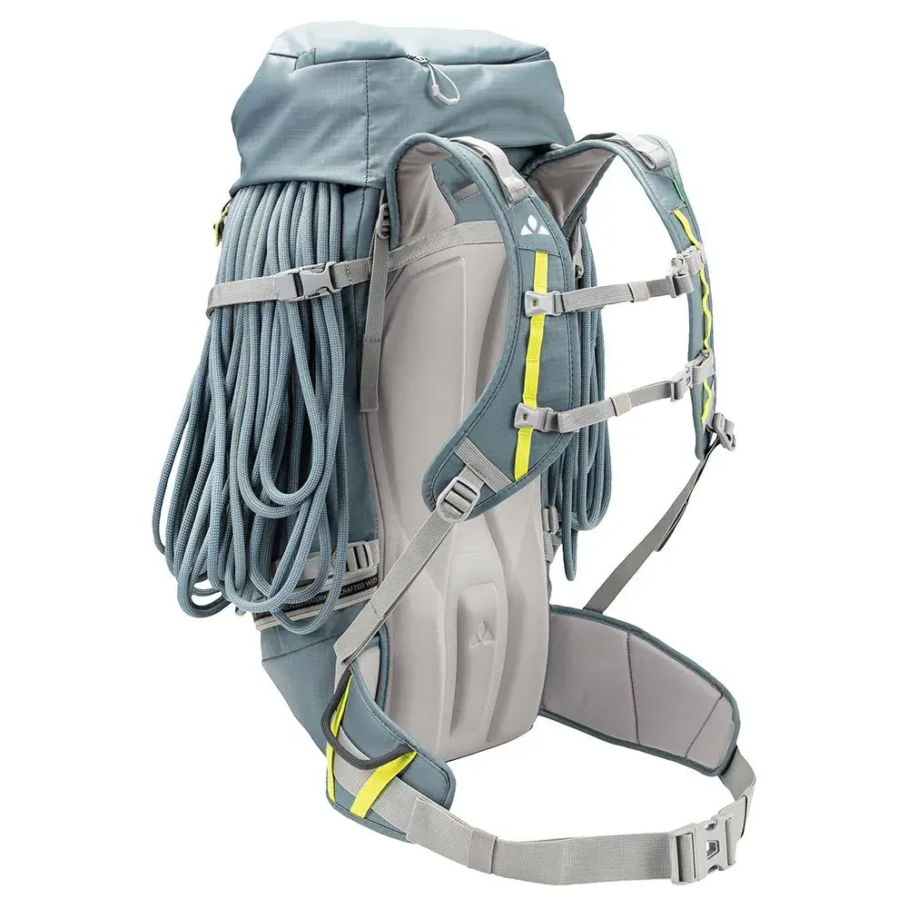 Когда вы начинаете восхождение с надетой альпинистской обвязкой, веревкой, карабином и другими используемыми принадлежностями, его можно спрятать в рюкзак для большей свободы движений, в то время как пряжка ремня продолжает надежно удерживать ваш груз близко к вашему телу.