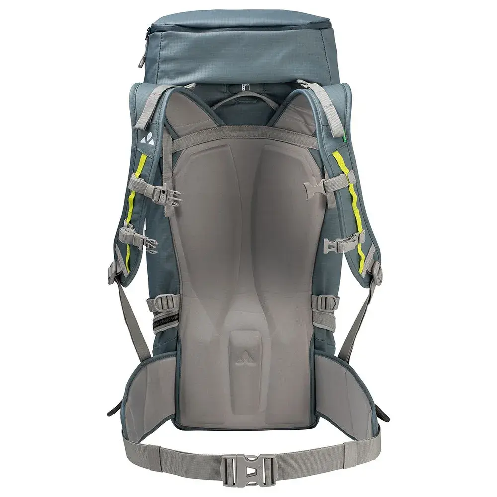 Плечевые ремни Ergoshape FoM, плечевые ремни можно центрировать для максимальной свободы движений, формованная спинка, предотвращающая снегопад, регулируемая съемная алюминиевая рама, мягкий съемный поясной ремень, петля для снаряжения на поясном ремне, карман на крышке с водонепроницаемой молнией, дополнительный карман на молнии внутри крышки, регулируемая высота крышки, съемный клапан, боковое крепление для лыж, петли для крепления снаряжения и шлема, точка крепления для ледовых инструментов, длинные компрессионные ремни для вариантов крепления снаряжения, убирающийся верхний компрессионный ремень / держатель веревки, карманы для лавинного снаряжения в основном отделении, нагрудный ремень со свистком, отверстие для питьевой системы, информационная панель для экстренных ситуаций в горах под крышкой.