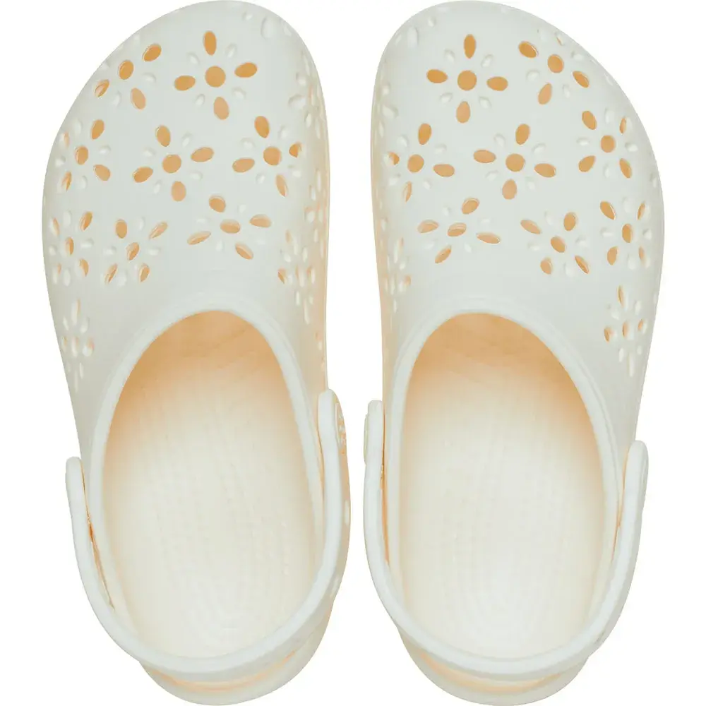 Классические сабо в новом, женственном исполнении! Эта новая версия наших сабо отличается вырезами в цветочном стиле, которые создают радостный и веселый образ, а также заклепками в цветочном стиле, которые объединяют дизайн.