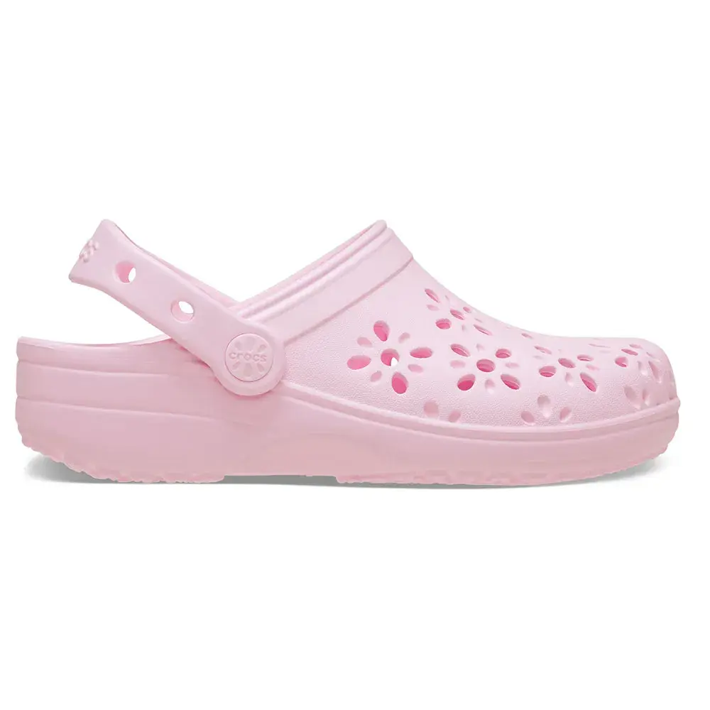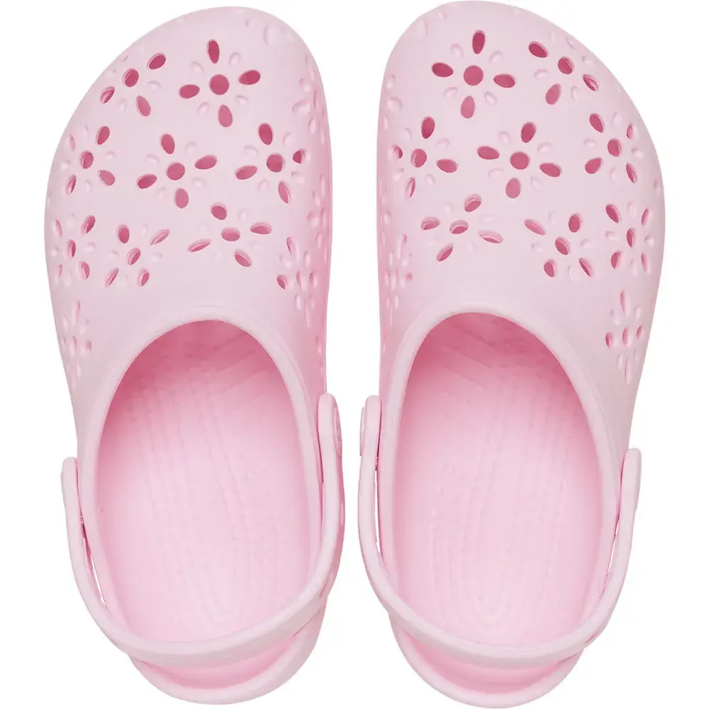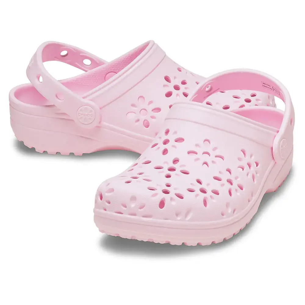 Детали классических детских сабо с цветочным принтом: