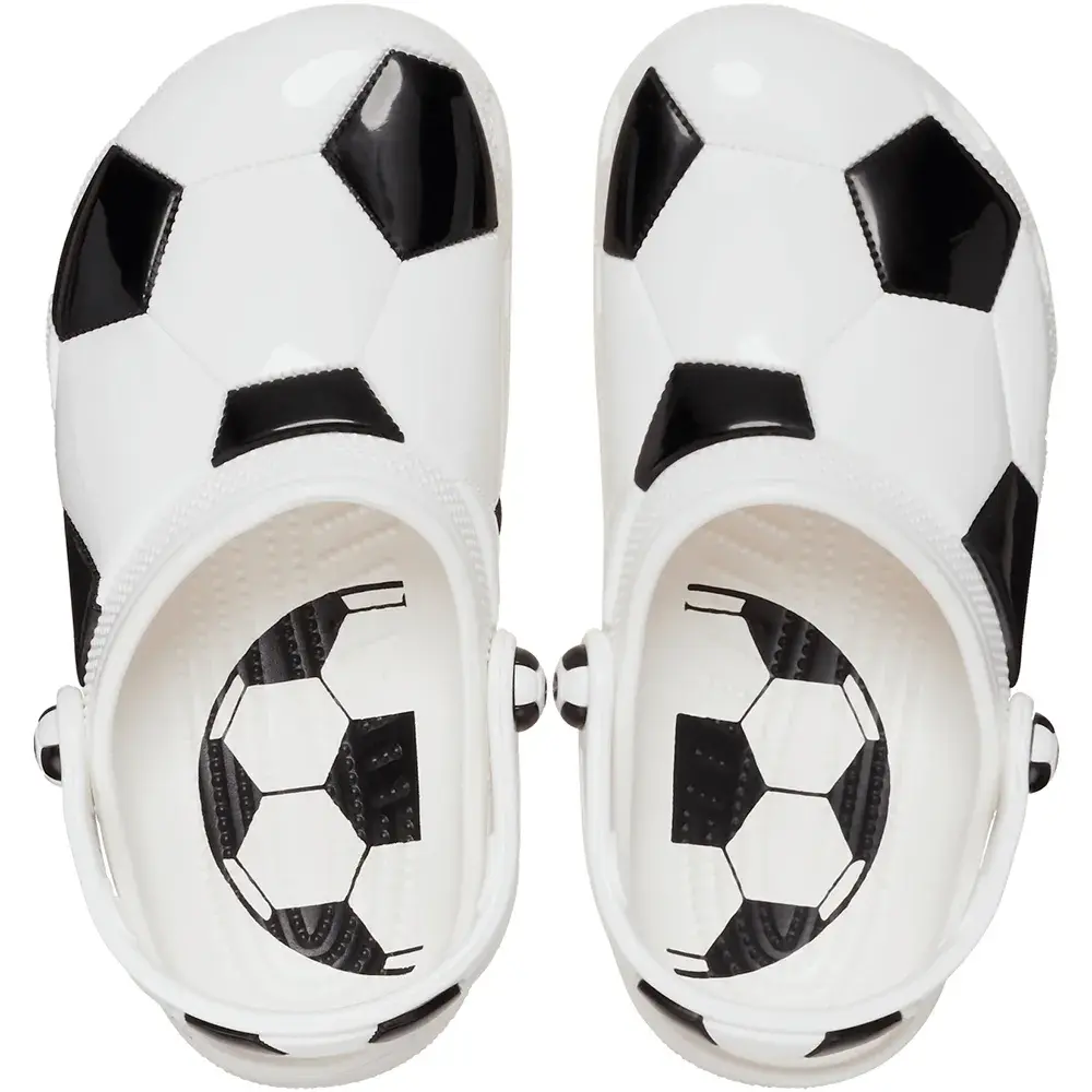 Эта версия культовых сабо разработана специально для юных футбольных фанатов. Благодаря уникальному верху, вдохновлённому культовым чёрно-белым футбольным мячом, заклёпкам в стиле футбольного мяча и застёжке на задней лямке, эти сабо помогут малышам продемонстрировать свою любовь к футболу. Кроме того, изображение футбольного мяча на стельках помогает малышам правильно подобрать кроссовки. Crocs предлагает широкий выбор классических сабо для детей и малышей с оригинальной графикой с яркими персонажами и другими вдохновляющими дизайнами, которые помогают детям самовыражаться и заводить новых друзей, делая обувь еще более увлекательной для малышей.