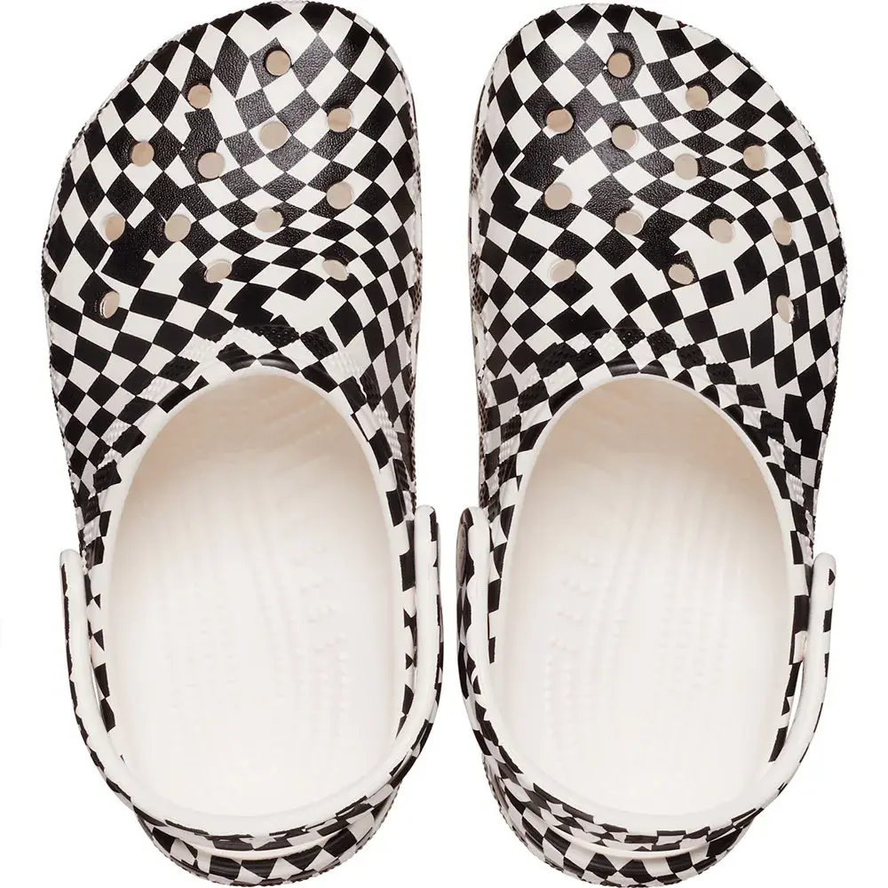 Деформированный черно-белый клетчатый принт придает дополнительный стиль этой версии культовых сабо.