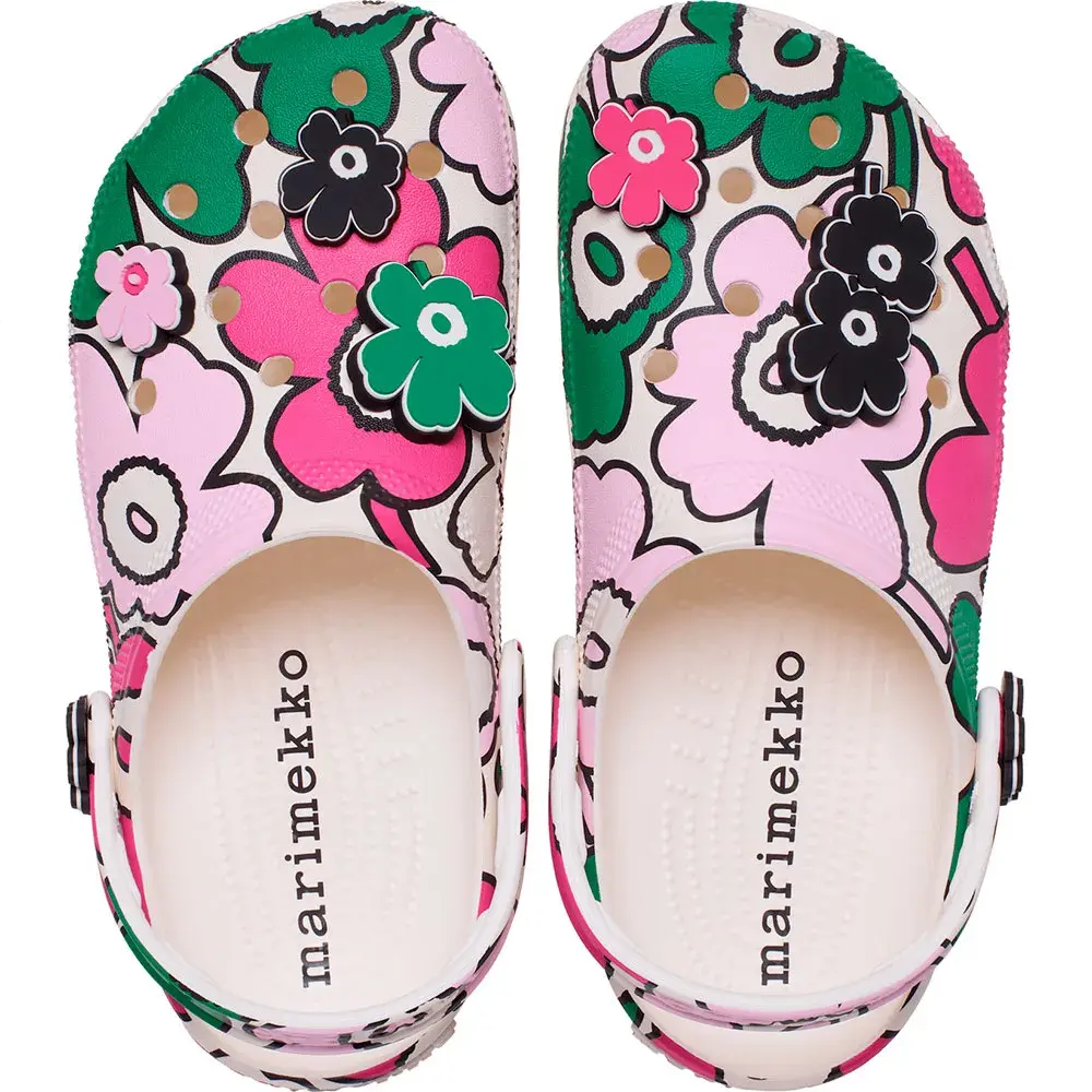 Классические сабо Marimekko x Crocs украшены цветочным принтом Unikko, созданным Майей Исолой в 1964 году. Яркий ассортимент моделей Jibbitz ограниченного выпуска дополнен персонализацией в виде лепестков с заклепками в виде цветов Unikko для дополнительного очарования. Утопленная амортизация и свежая вентиляция делают эту весеннюю модель глотком свежего воздуха.