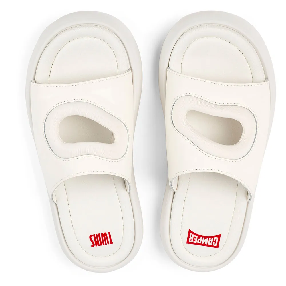 Женские белые кожаные/текстильные шлепанцы с деталями из переработанного неопрена, подкладкой из переработанного неопрена, стельками из ЭВА и подошвами XL Extralight Organix 3.0 с 30% биоциркулярных компонентов.