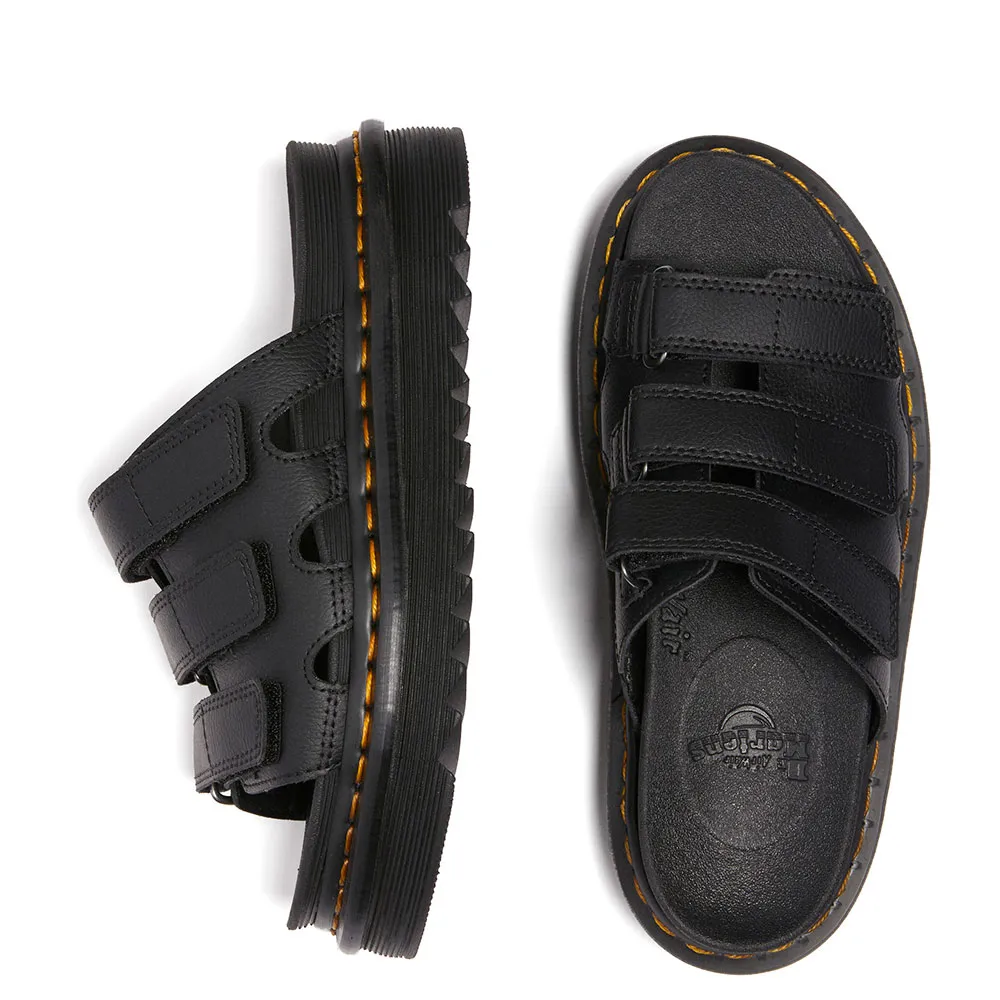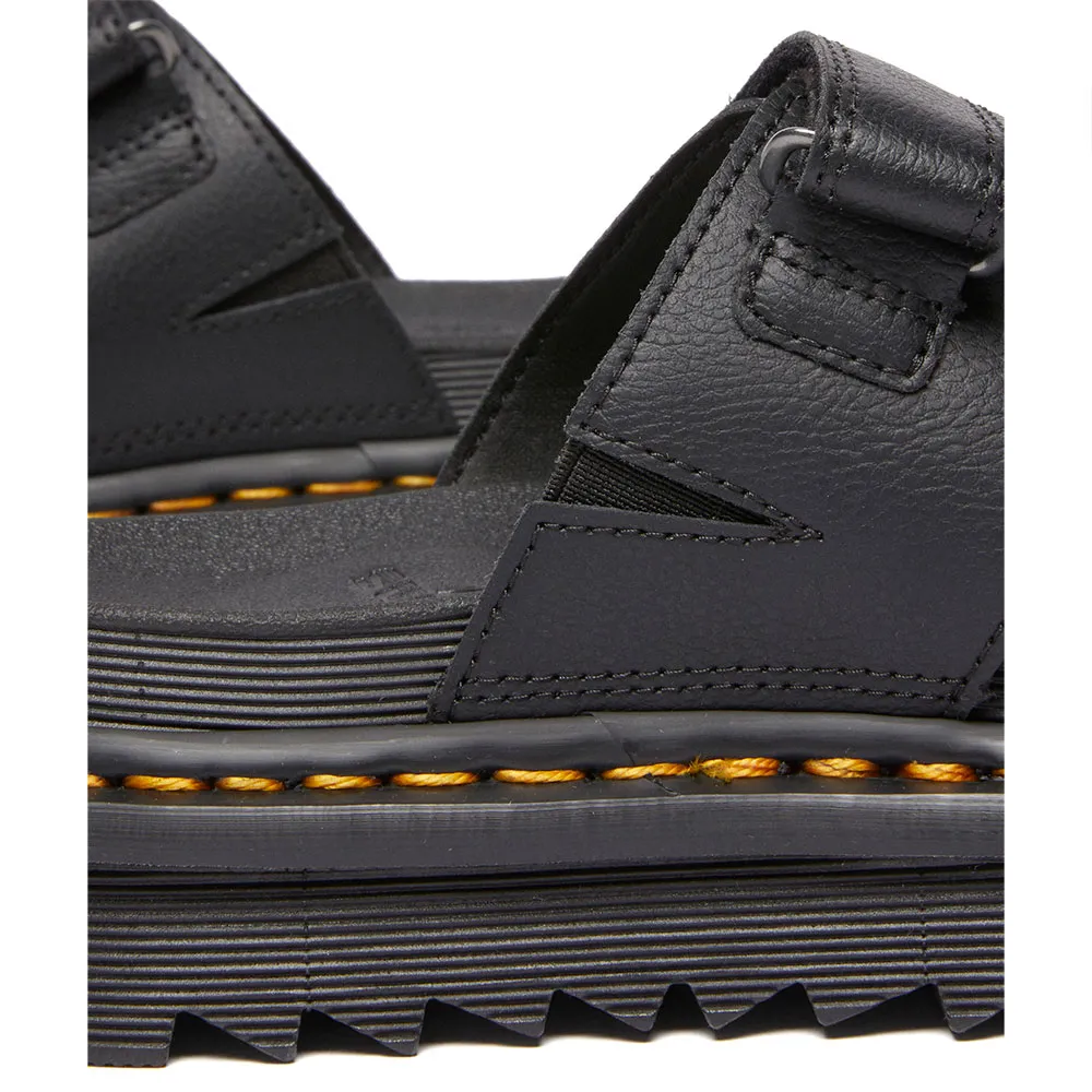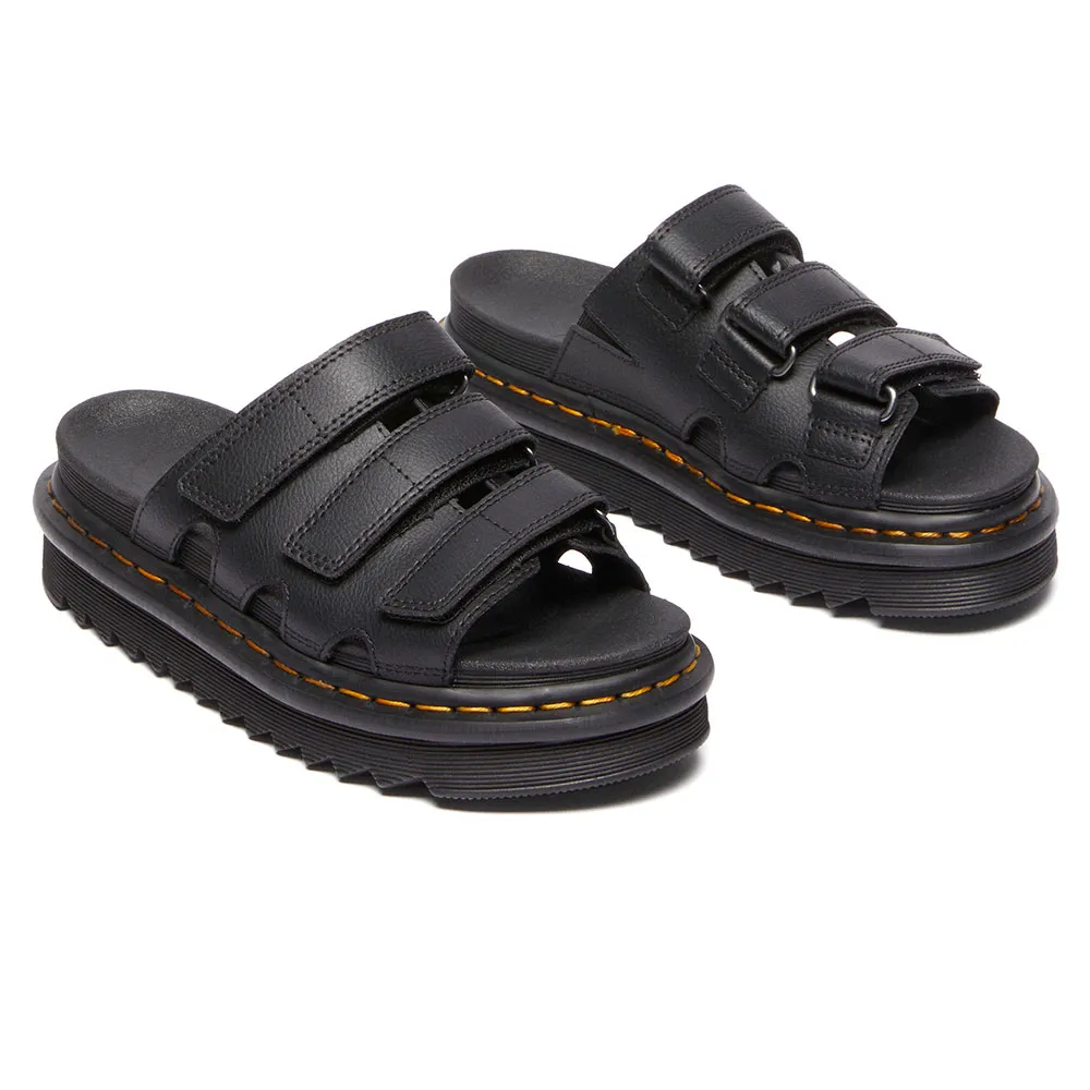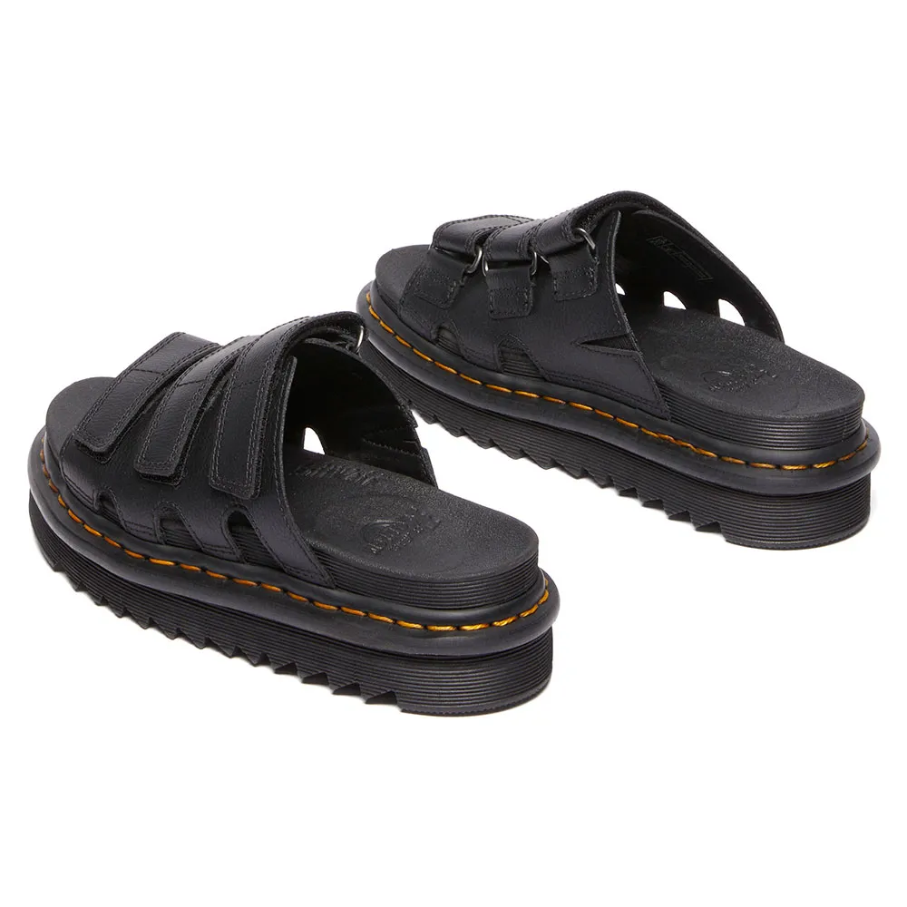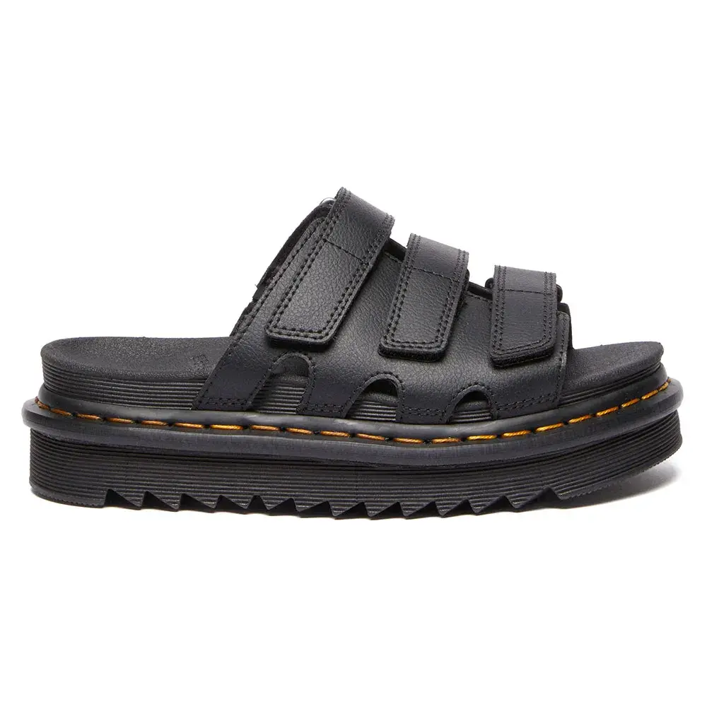 Подошва имеет канавки и закреплена фирменной желтой строчкой DM.