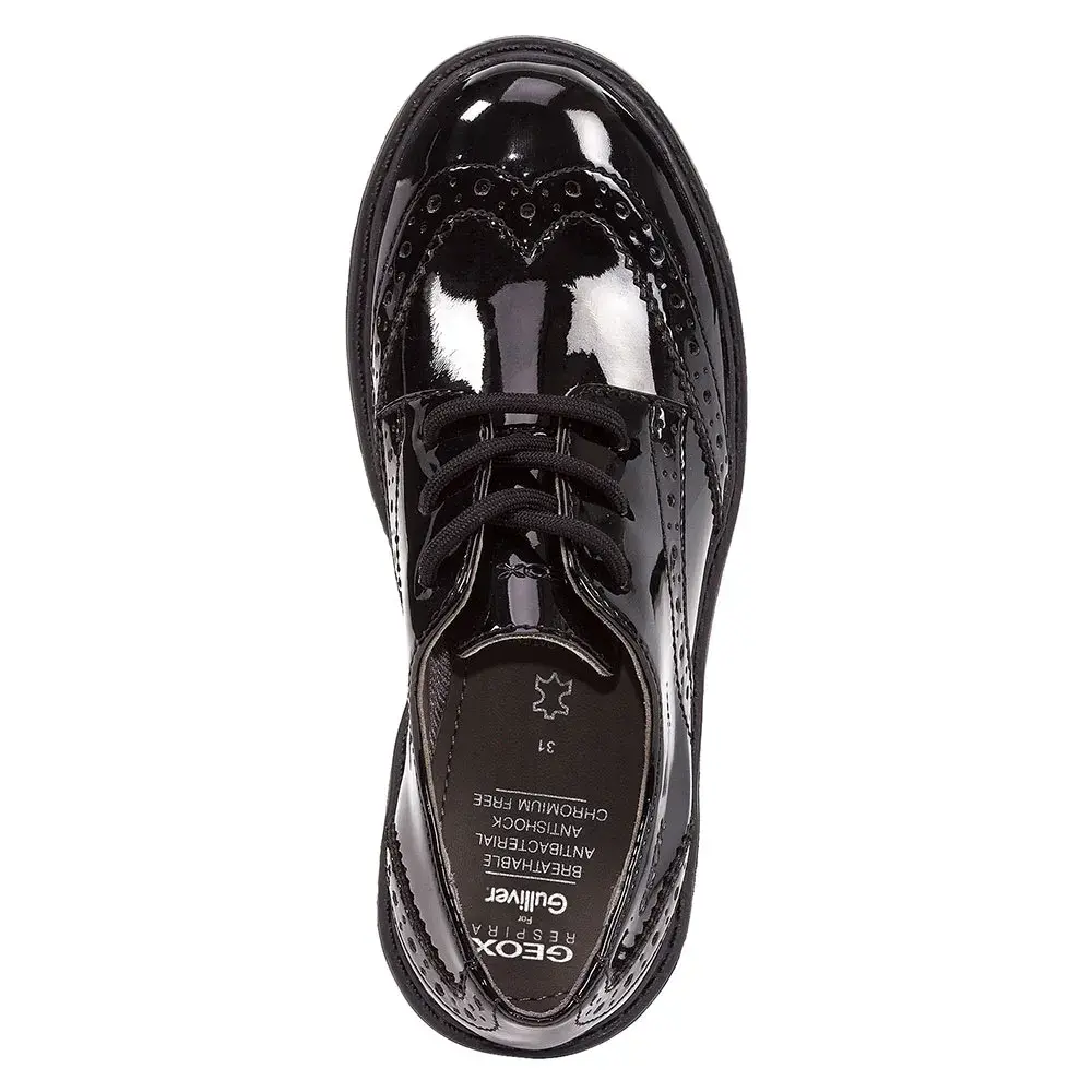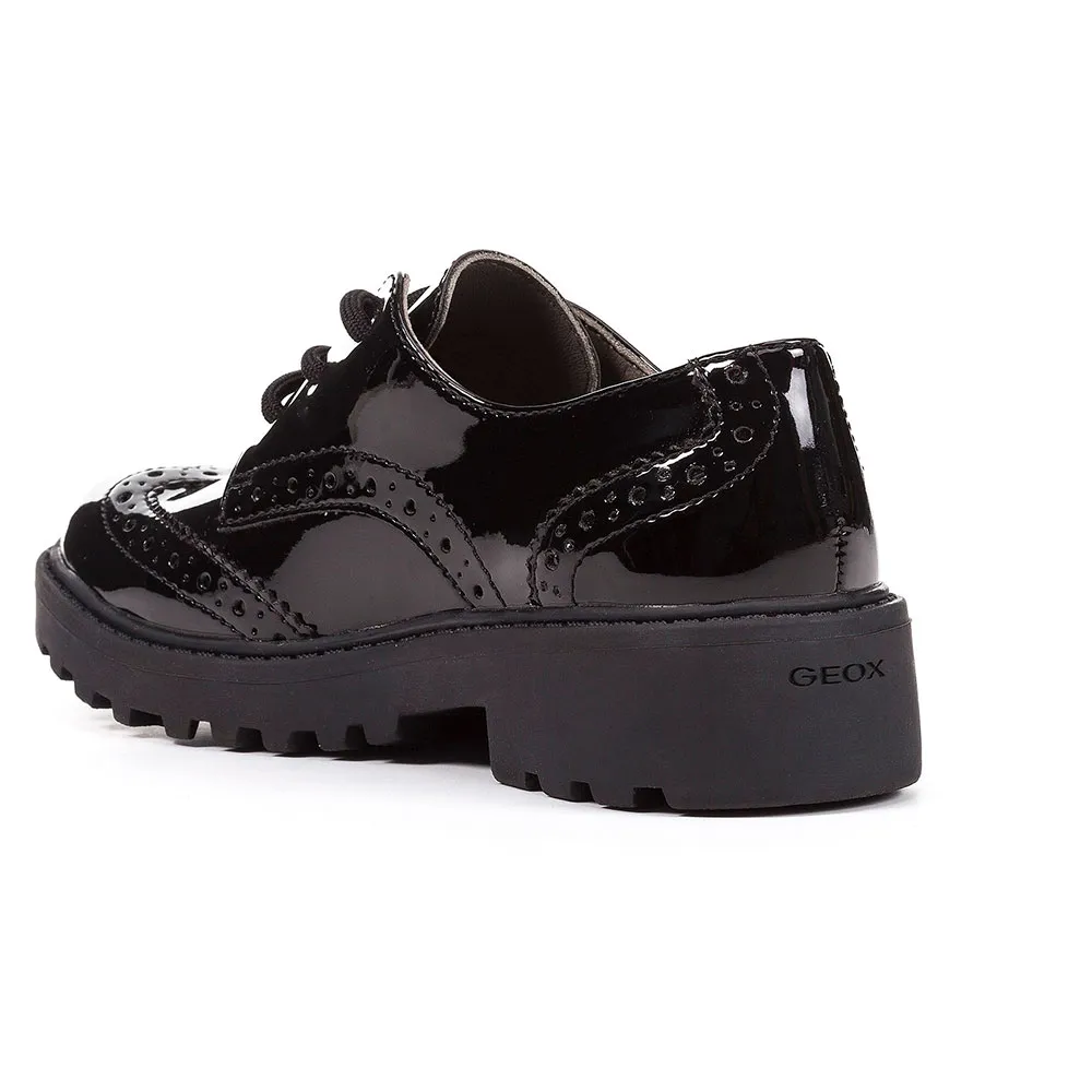 Casey — это туфли-дерби на шнуровке для девочек в деловом стиле с верхом из лакированной кожи, украшенным деталями в стиле Оксфорд, что делает их идеальным выбором для учебного года.