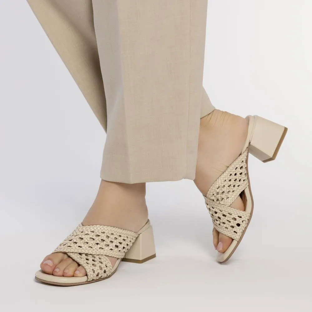 Тонкий штрих, который нужен любому образу! Кожаные босоножки с открытой пяткой и плетением бежевого цвета.
