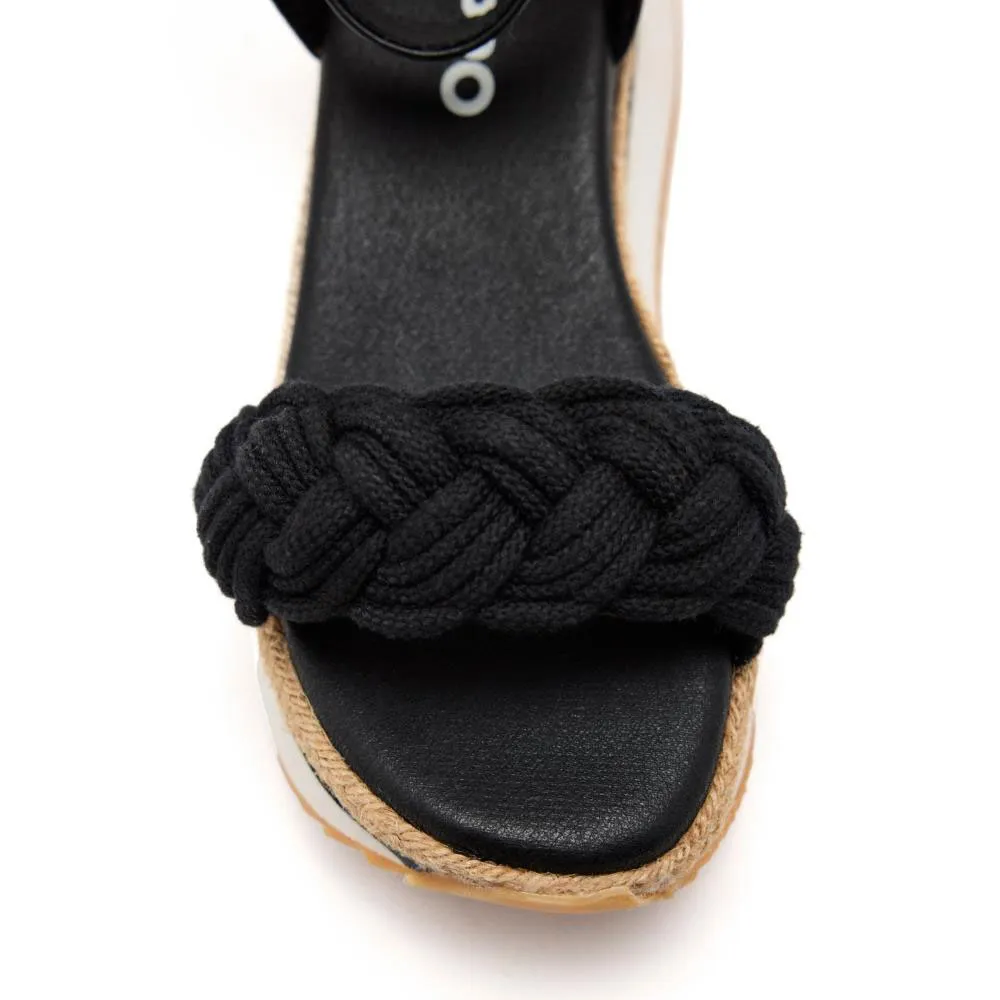 Открытые кожаные кроссовки с танкеткой из рафии.