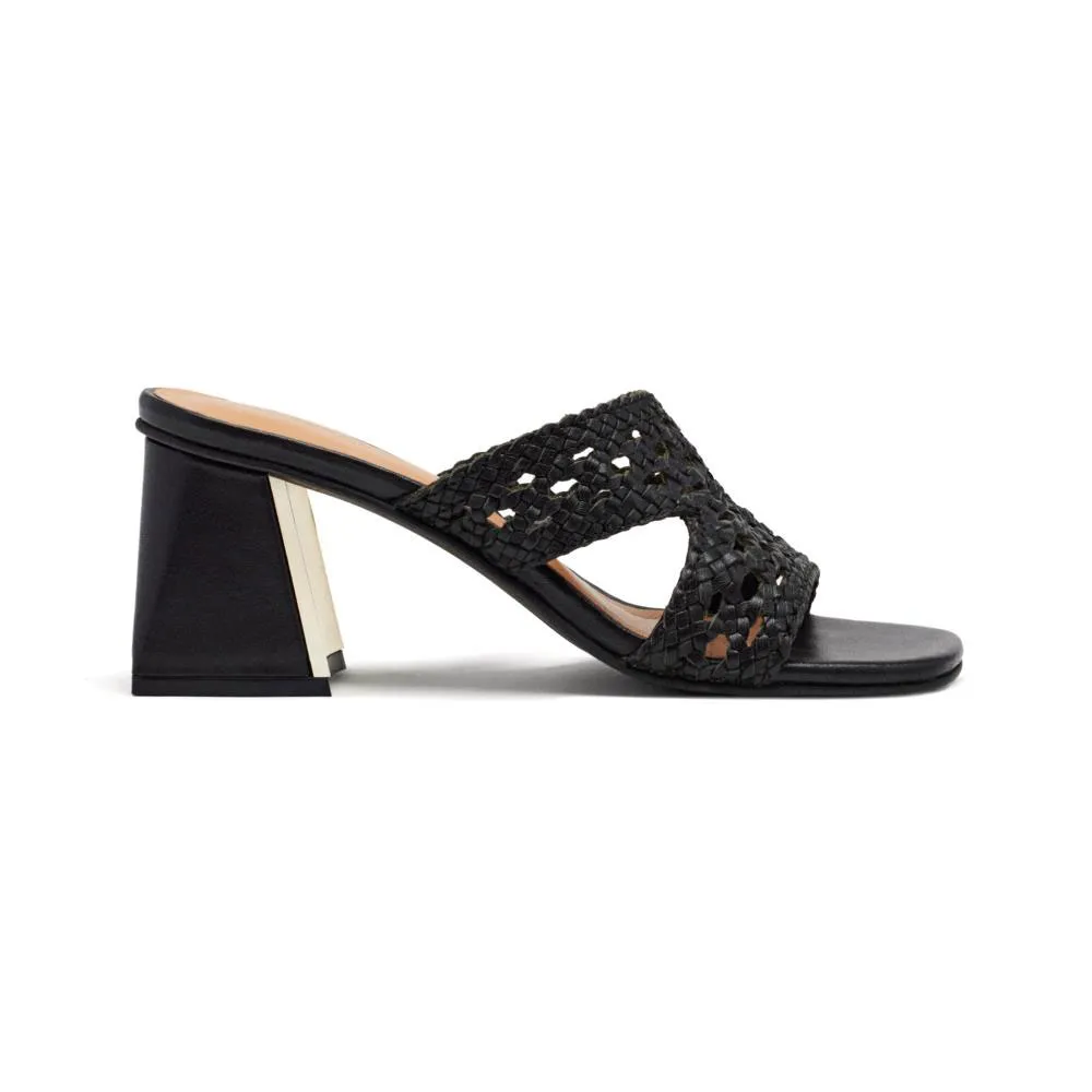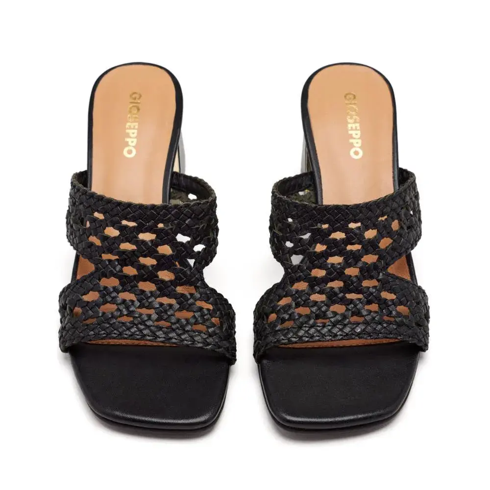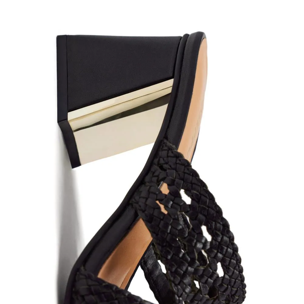 Мюли из плетеной кожи с металлическими вставками.