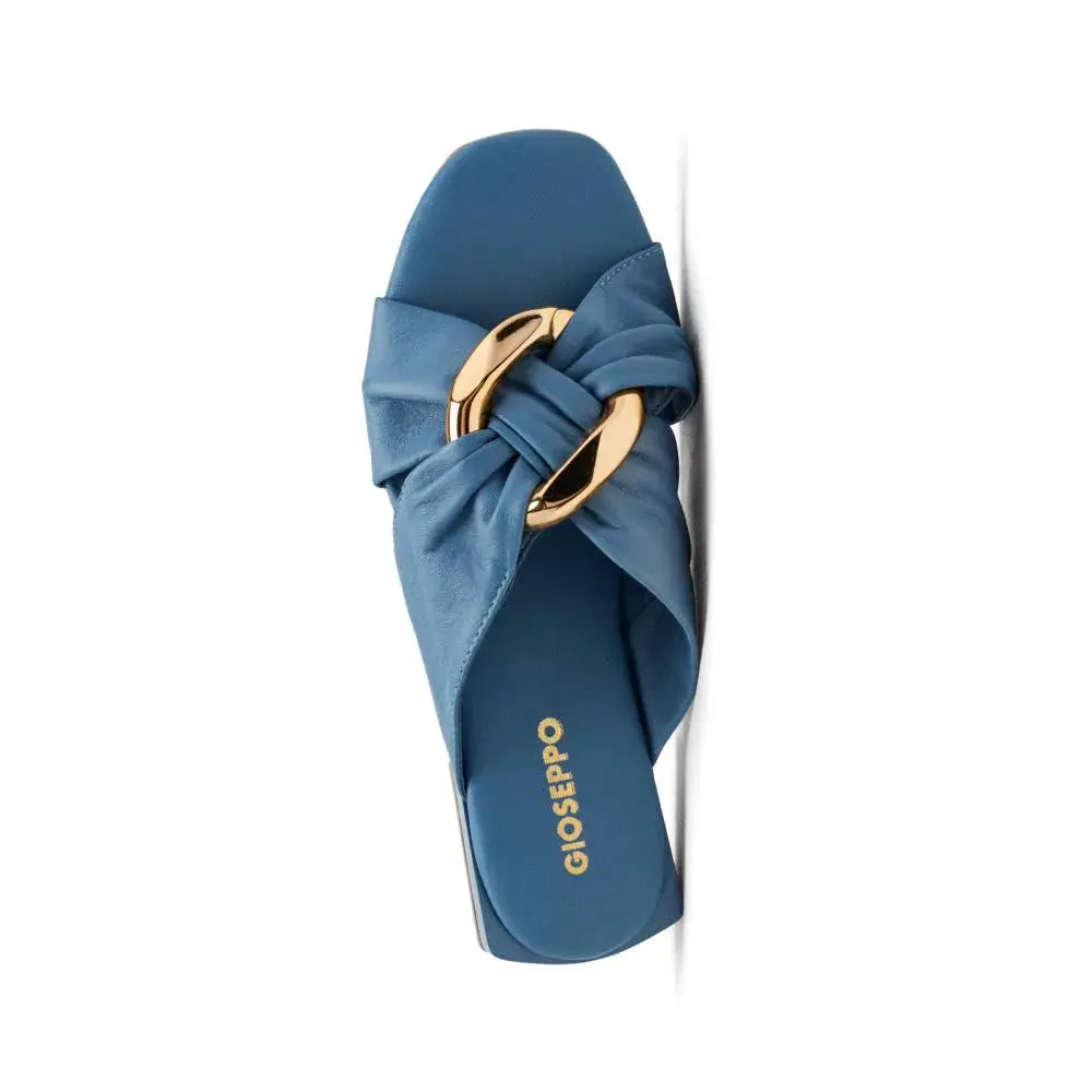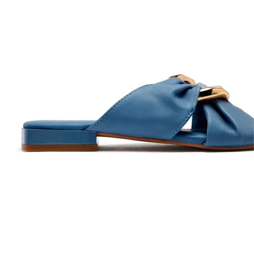 Плоские кожаные сандалии с металлической аппликацией.