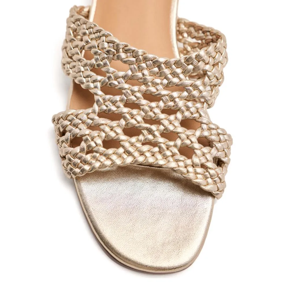 Мюли из плетеной кожи с металлическими вставками.