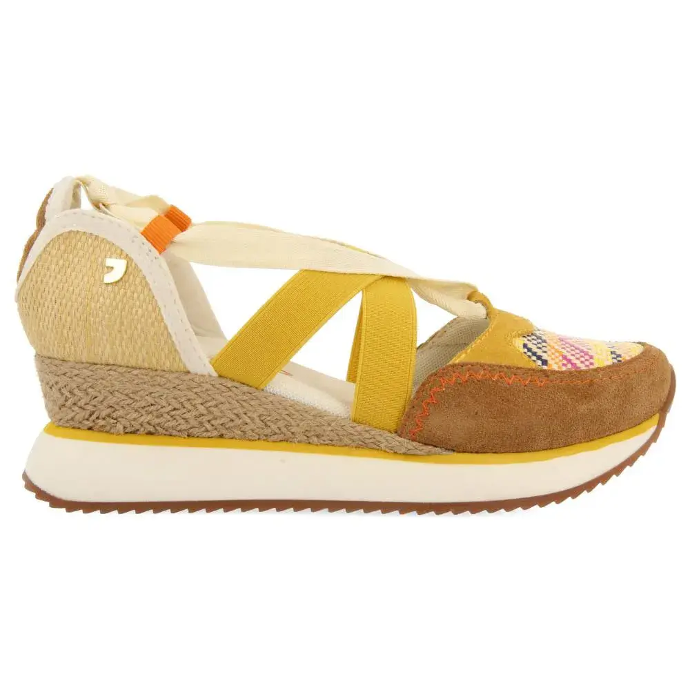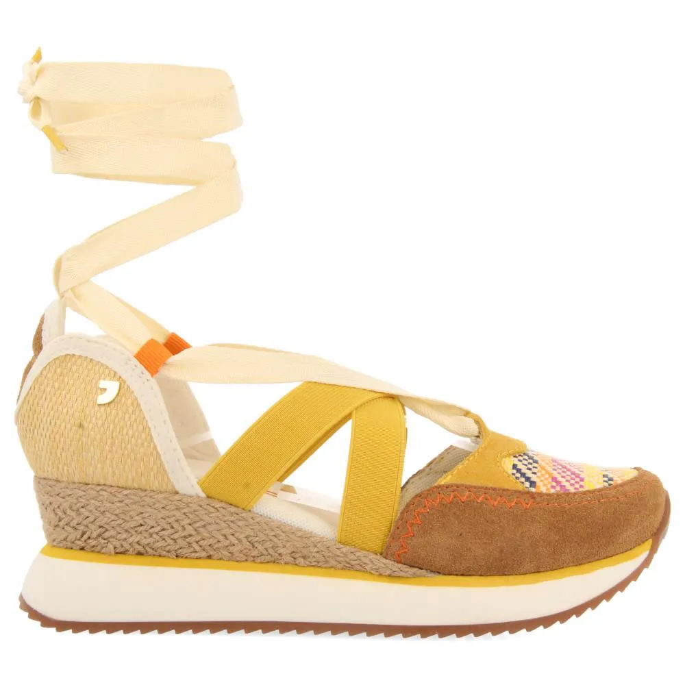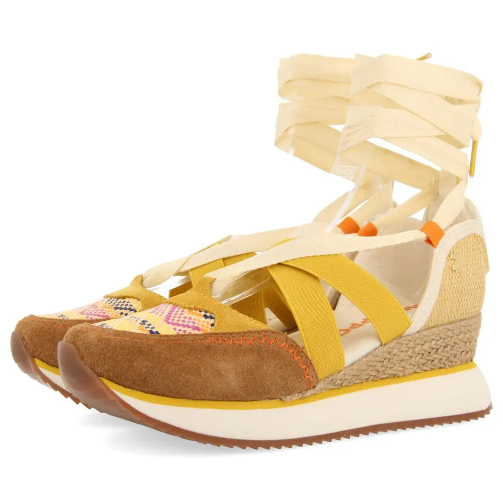 Кроссовки с открытым носком, принтом животных и танкеткой из рафии.