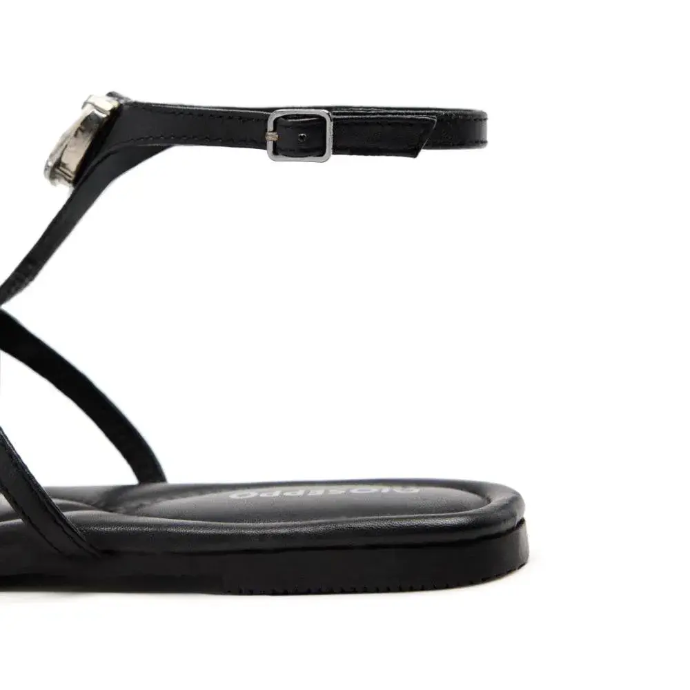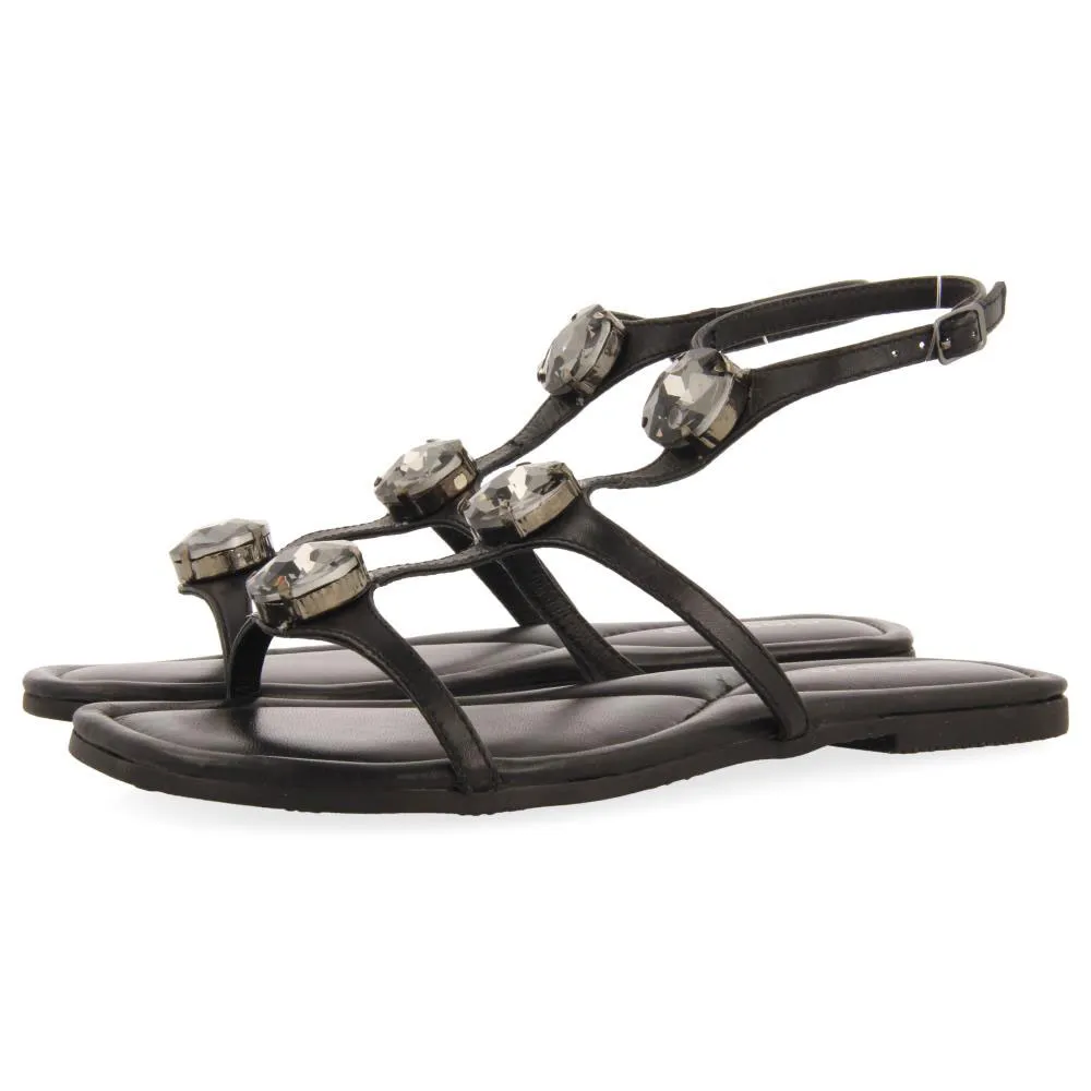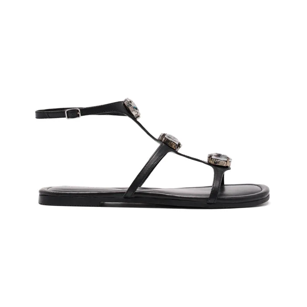 Сандалии в греческом стиле из кожи с бусинами на легкой танкетке с металлической отделкой.
