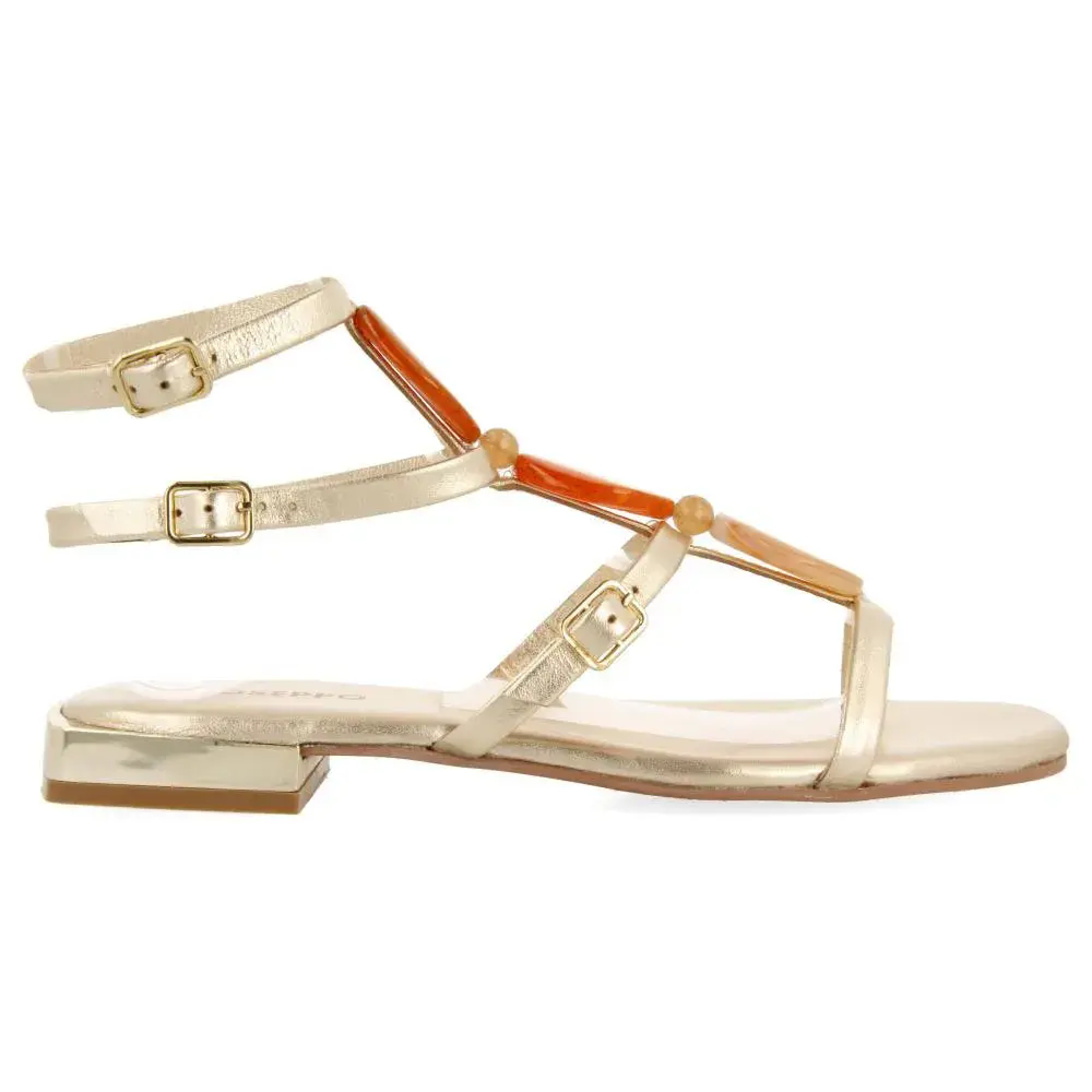 Плоские кожаные сандалии с металлическими аппликациями.