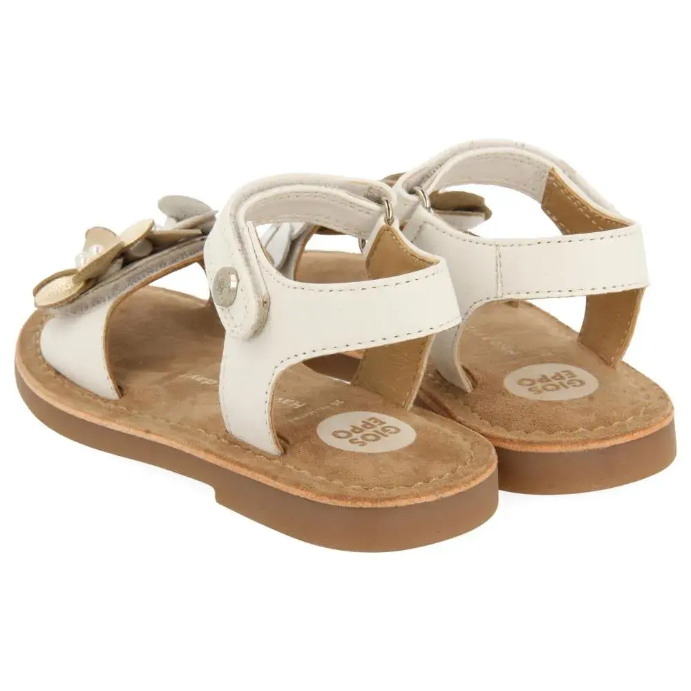 Сандалии в греческом стиле из металлизированной кожи с цветочным декором.