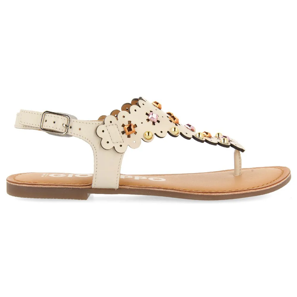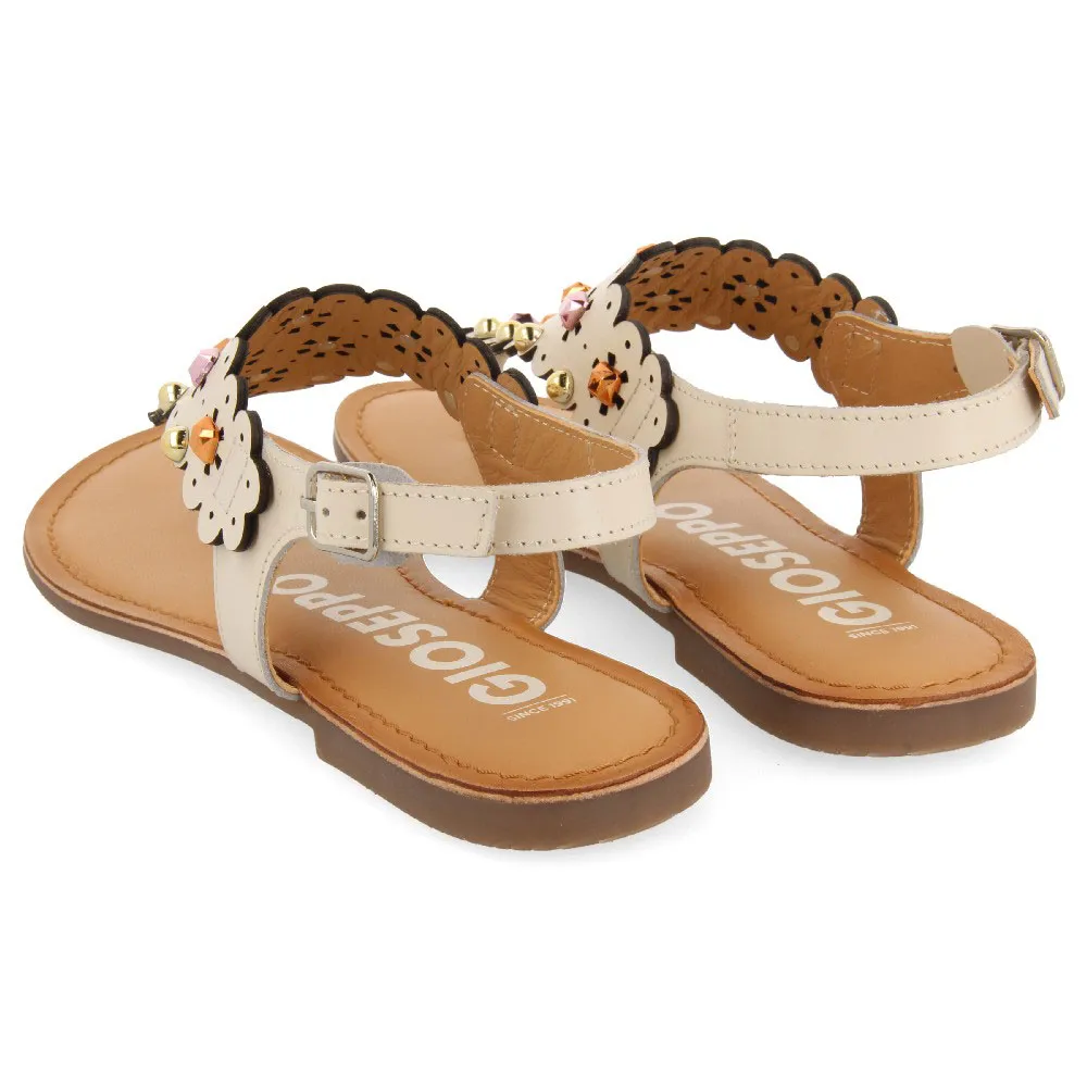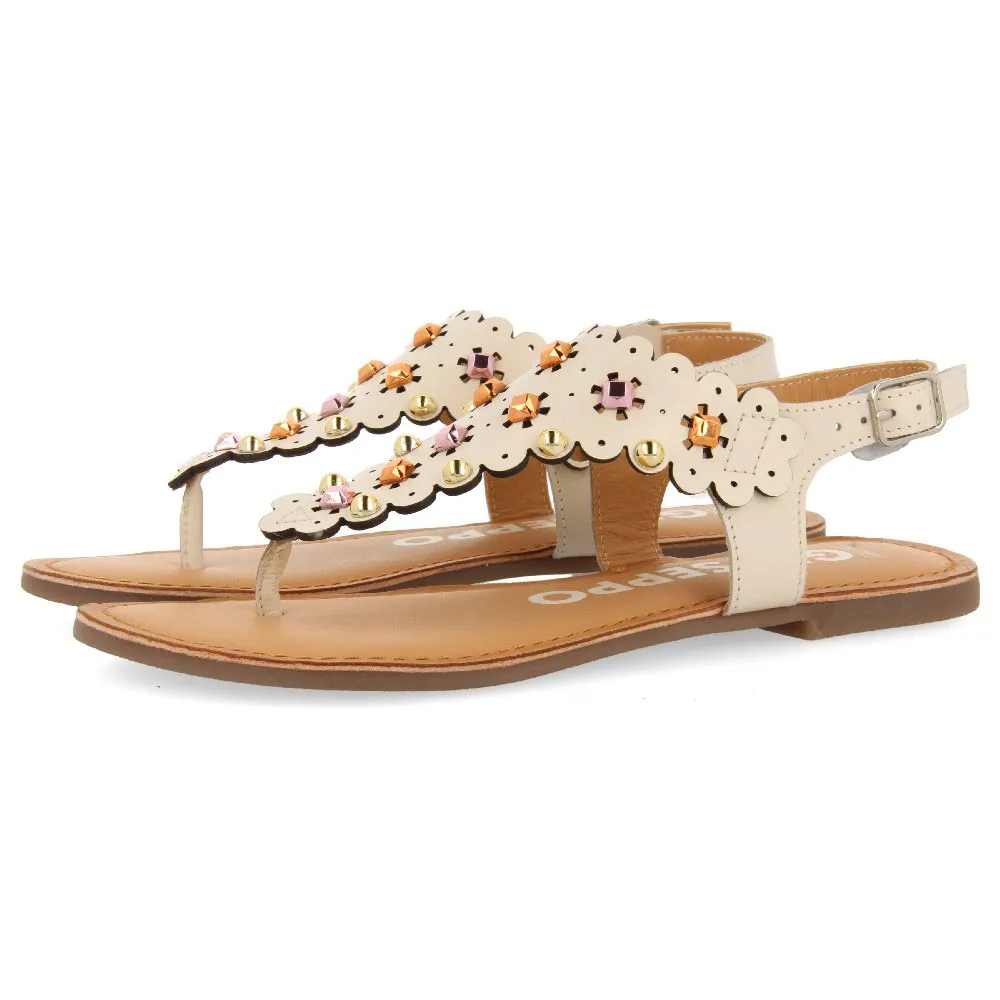 Самая летняя модель! Сандалии нежно-белого цвета с цветочными деталями и заклёпками.