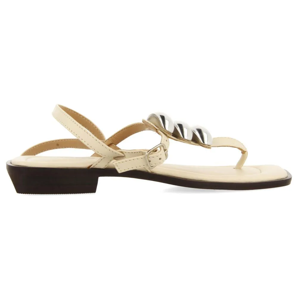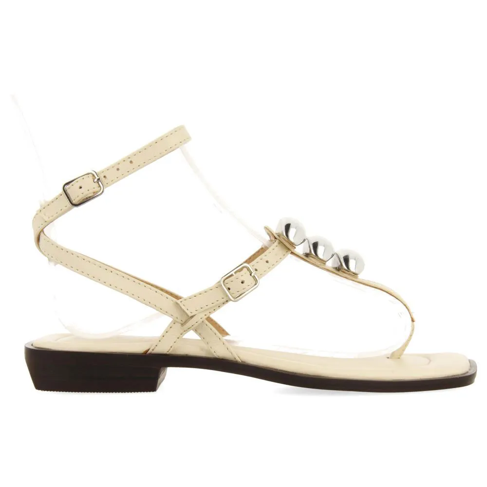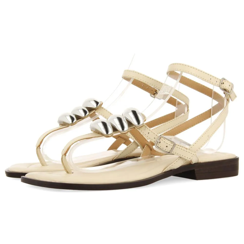 Кожаные сандалии в греческом стиле на плоской подошве с металлическими аппликациями.