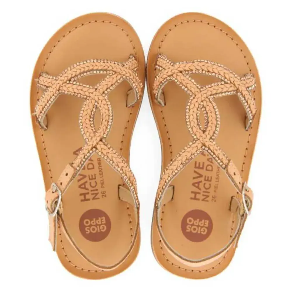 Любовь с первого взгляда! Сандалии из кожи телесного цвета, украшенные стразами и плетением.