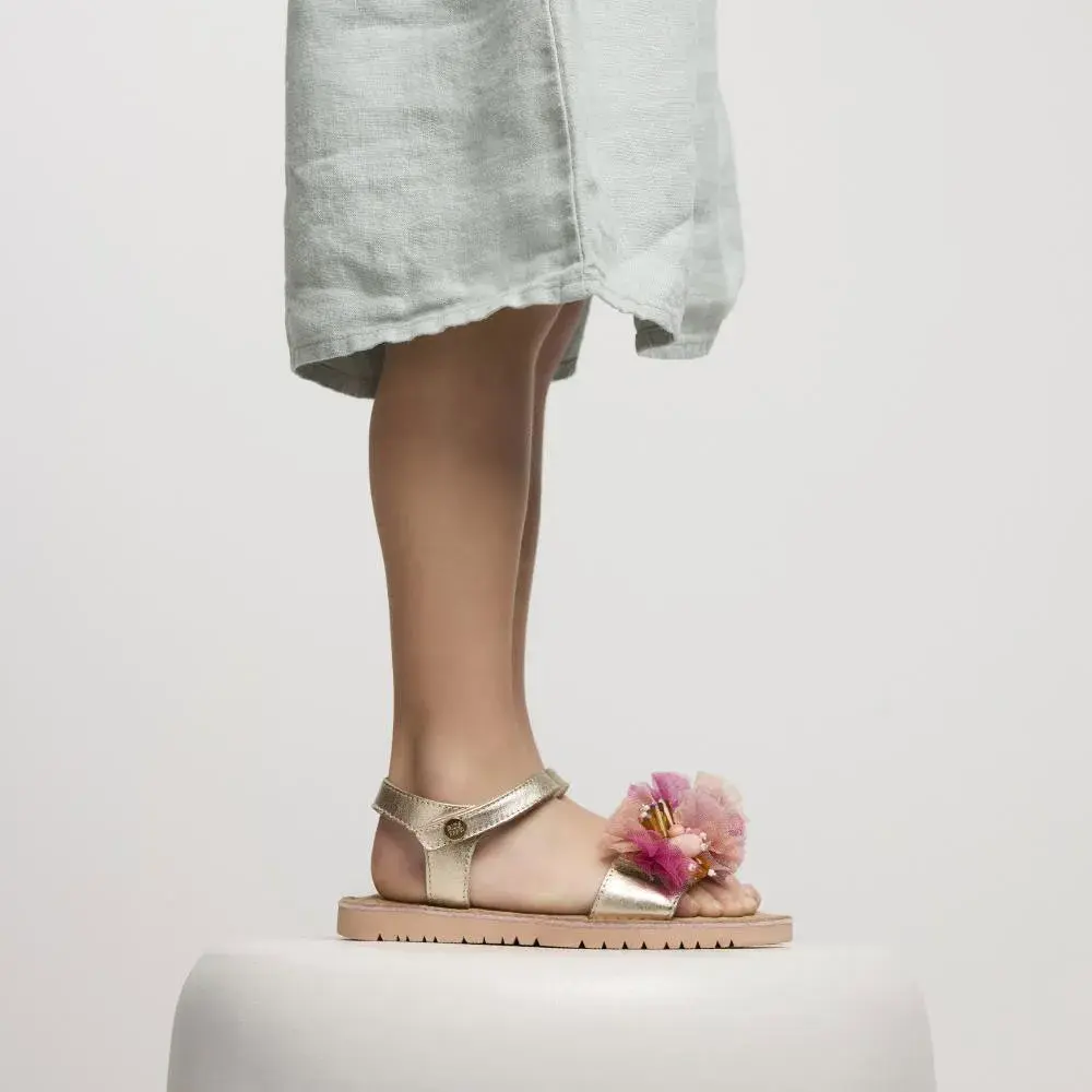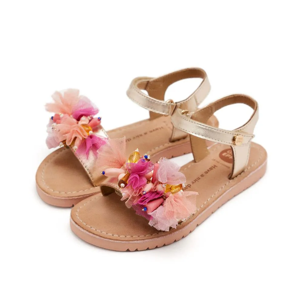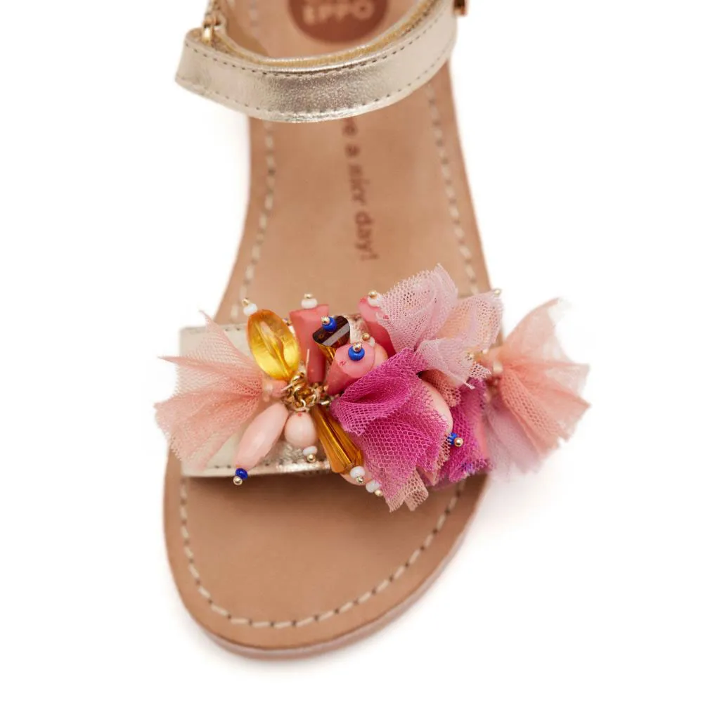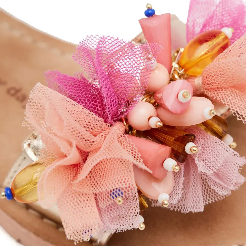 Плоские кожаные сандалии с ремешками и жемчужным декором.