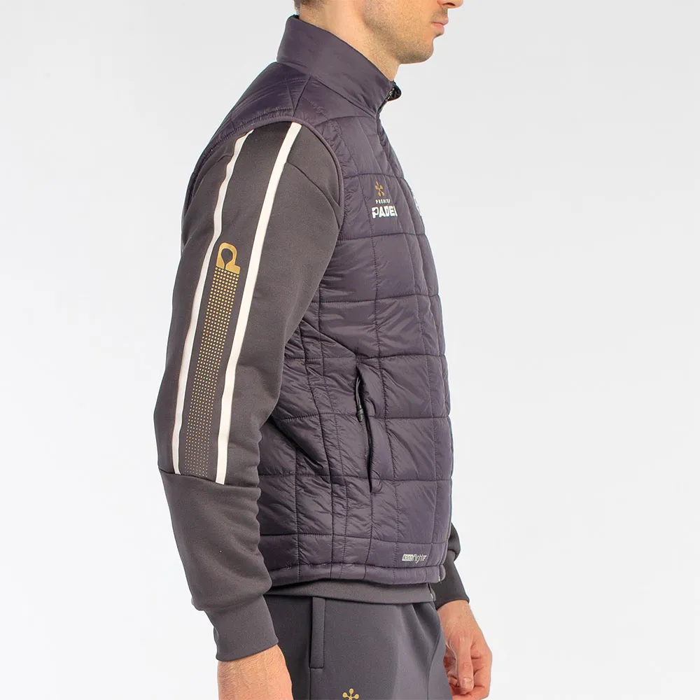 Центральная застёжка-молния, боковые карманы на молнии, проймы на резинке, регулируемый низ с помощью резинки и шнурков. Отделка фирменной лентой и графика Premier Padel.
