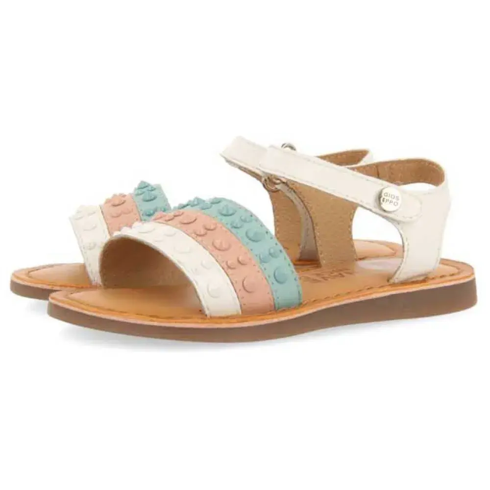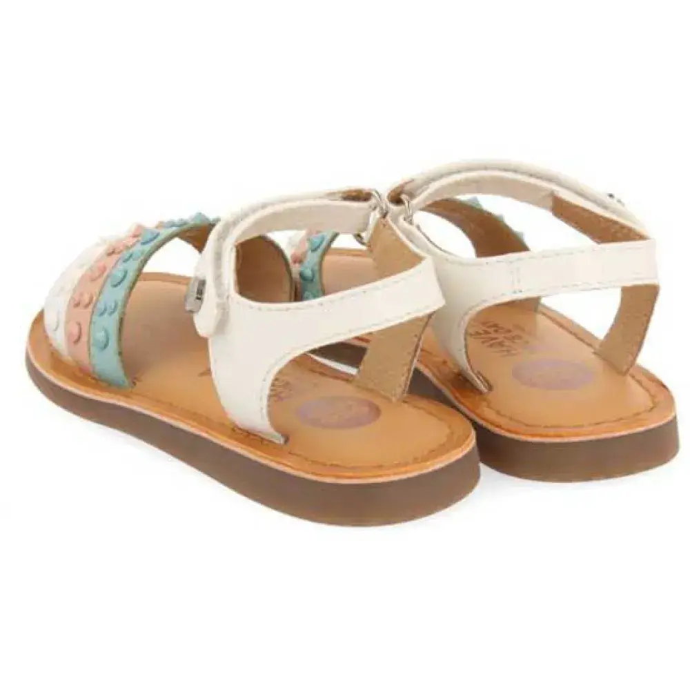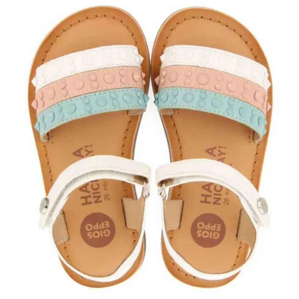 Разноцветные кожаные сандалии пастельных тонов с заклепками на мыске.