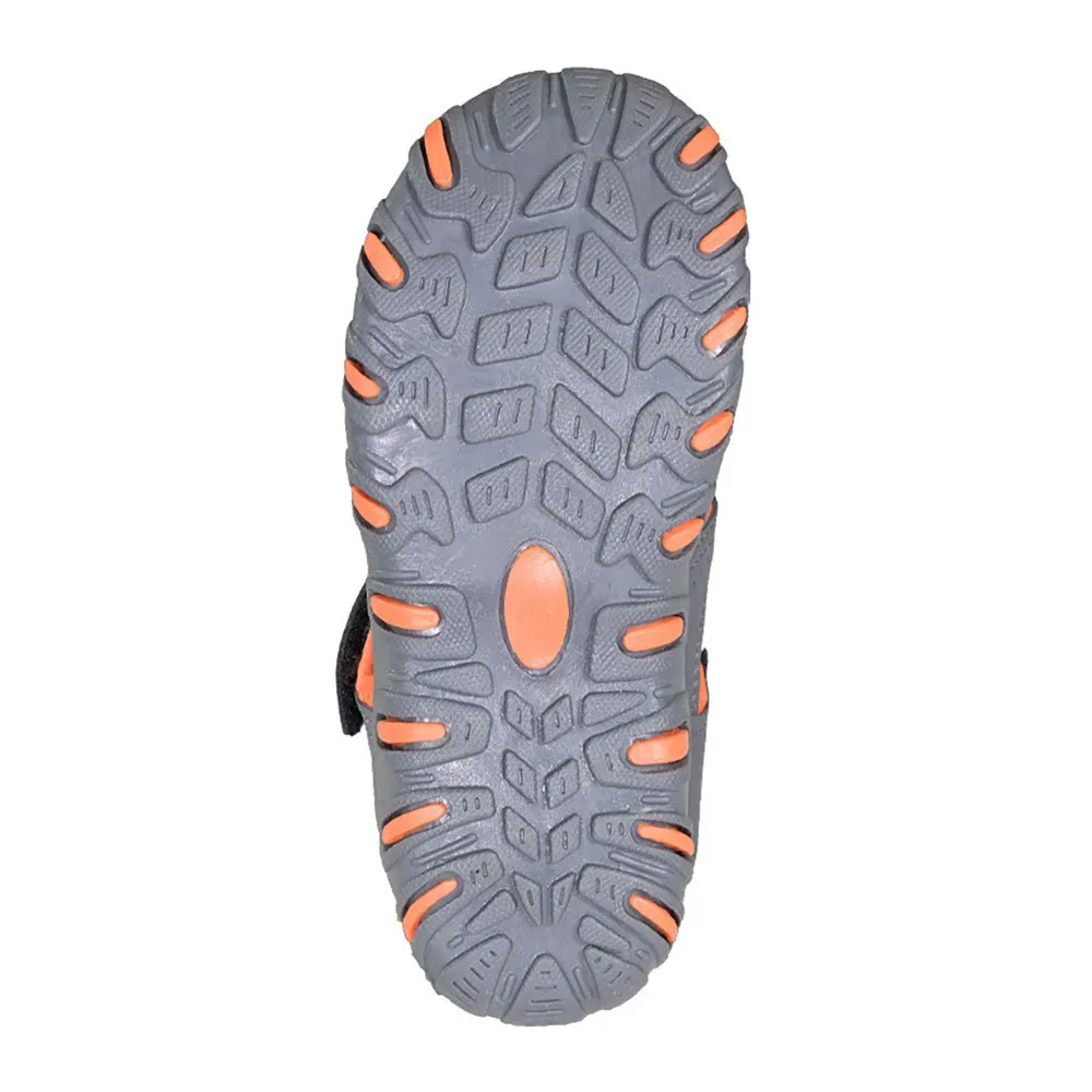 Сочетание антрацитово-оранжевого цвета добавляет сандалиям веселья и яркости, делая их визуально привлекательными для детей. Регулируемые ремешки обеспечивают надежную посадку, позволяя детям ходить и бегать с уверенностью. Сандалии также оснащены мягкой и контурной стелькой для дополнительного комфорта, снижающей усталость во время долгих часов игры.