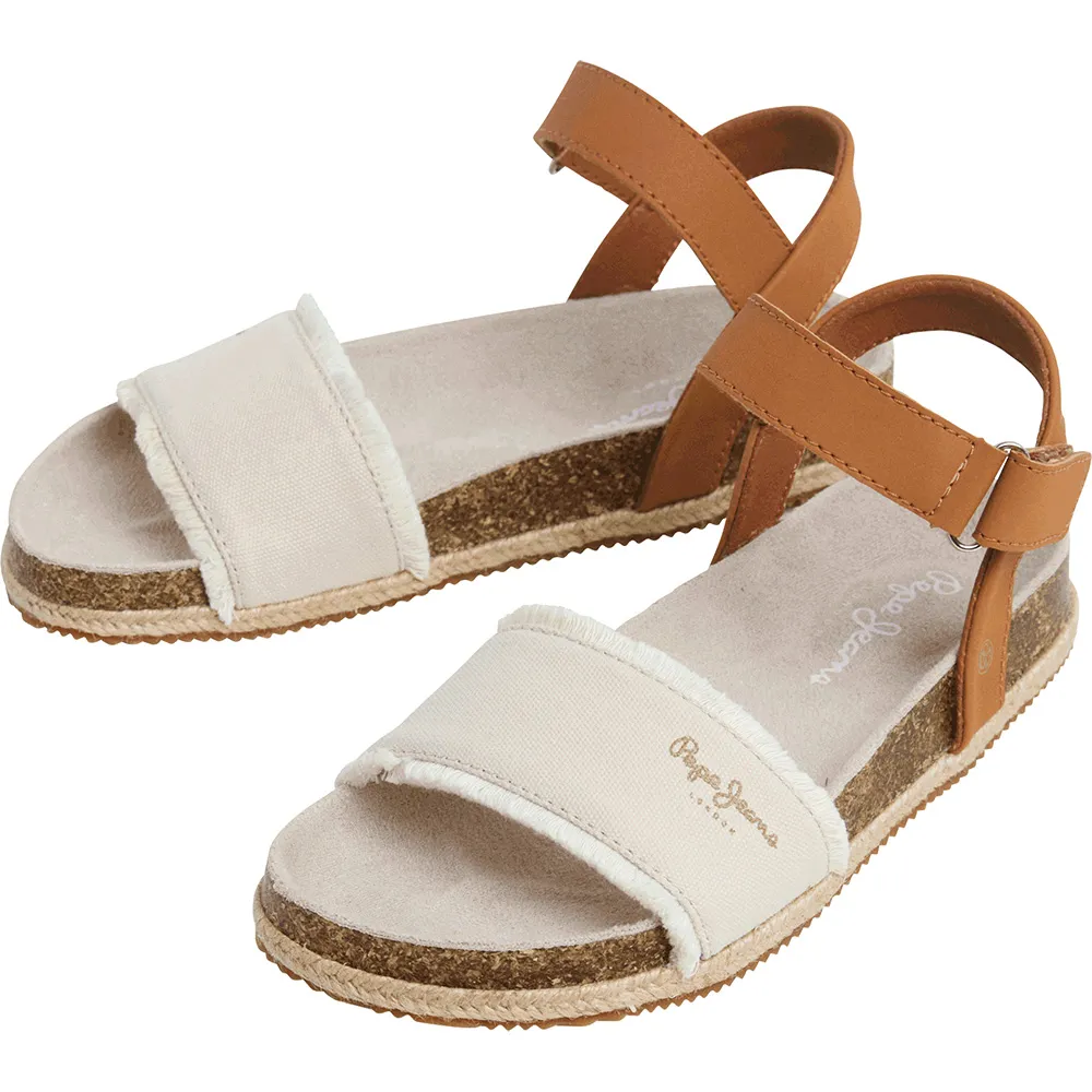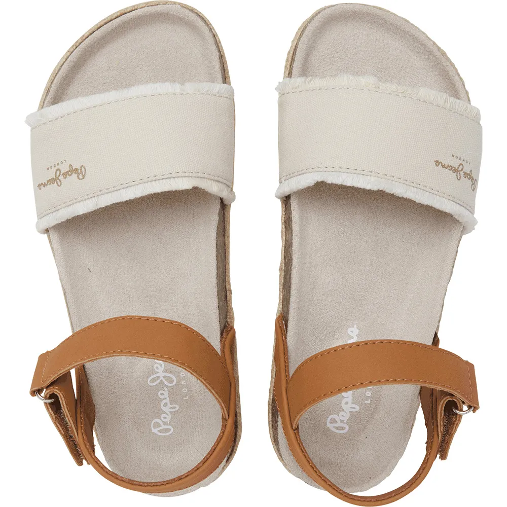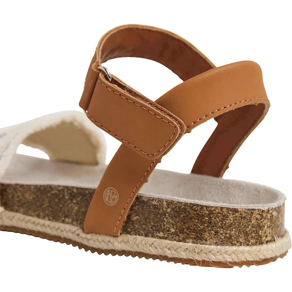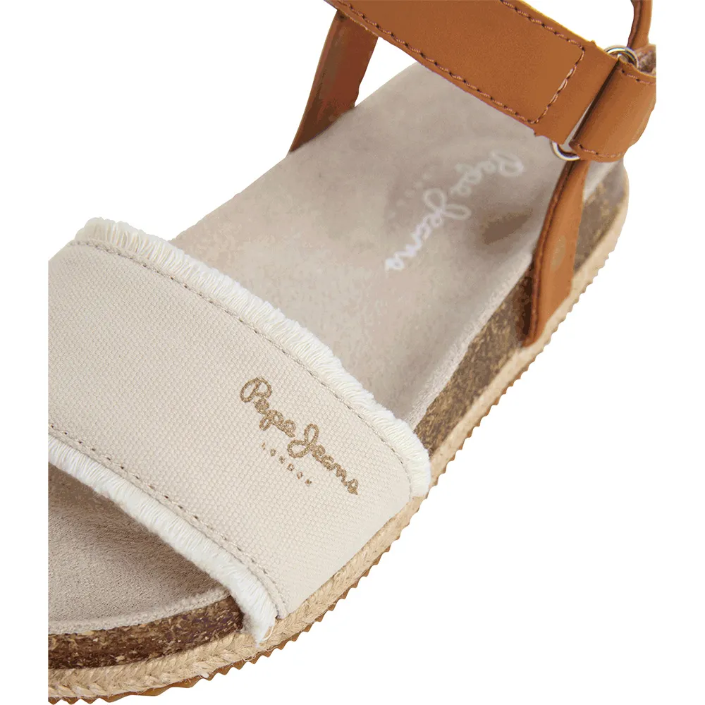Анатомические сандалии Berlin Bass G с застежкой на липучку на щиколотке, тканевой накладкой с бахромой и классическим логотипом на союзке, промежуточной подошвой из натуральной пробки, джутовым рантом, сверхлегкой подошвой из ЭВА и металлической булавкой-монограммой «P» сбоку.