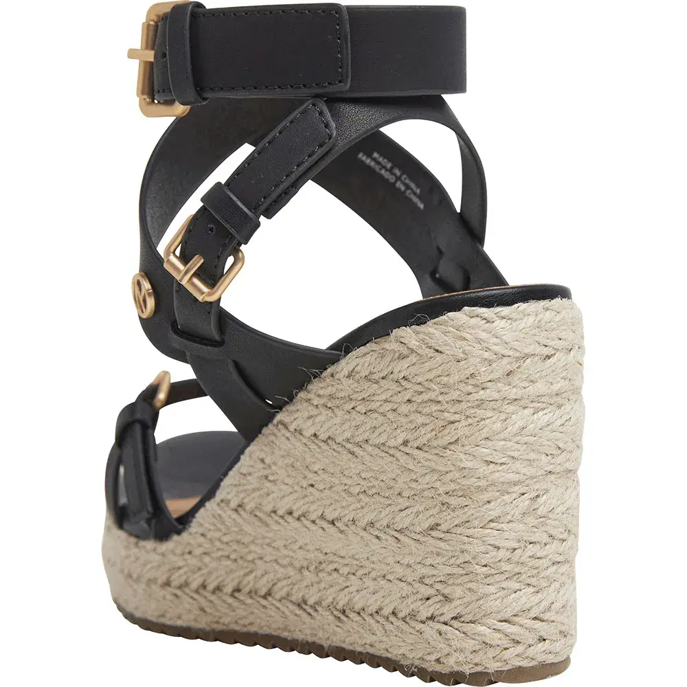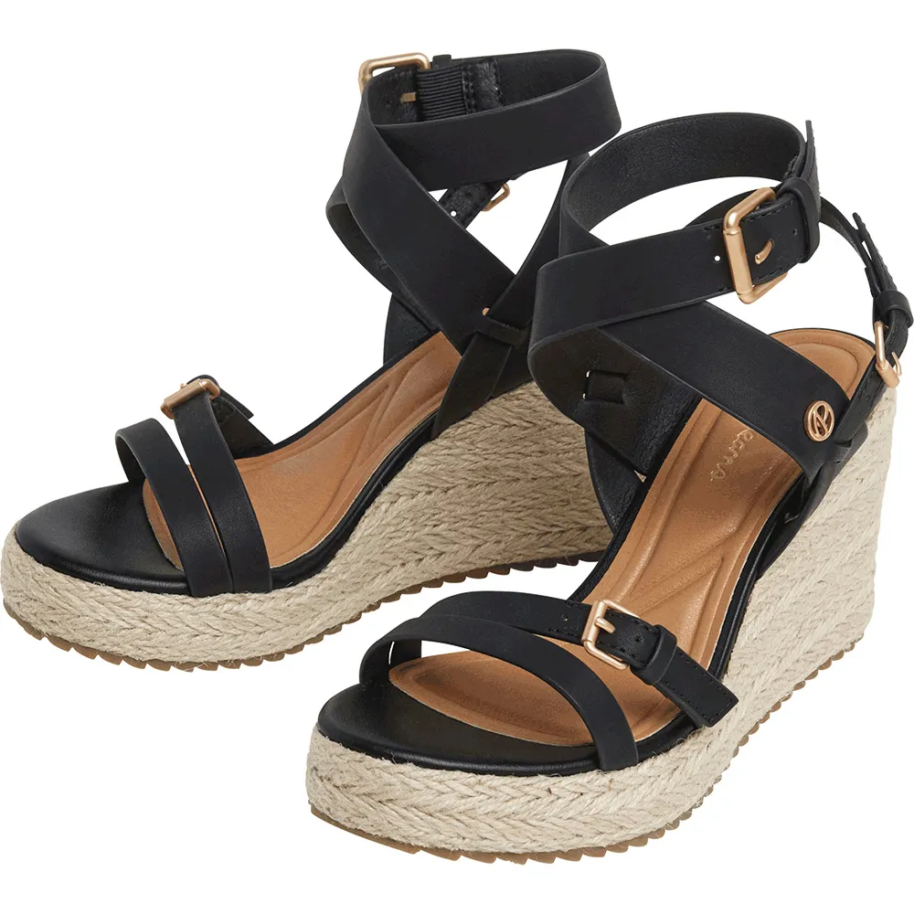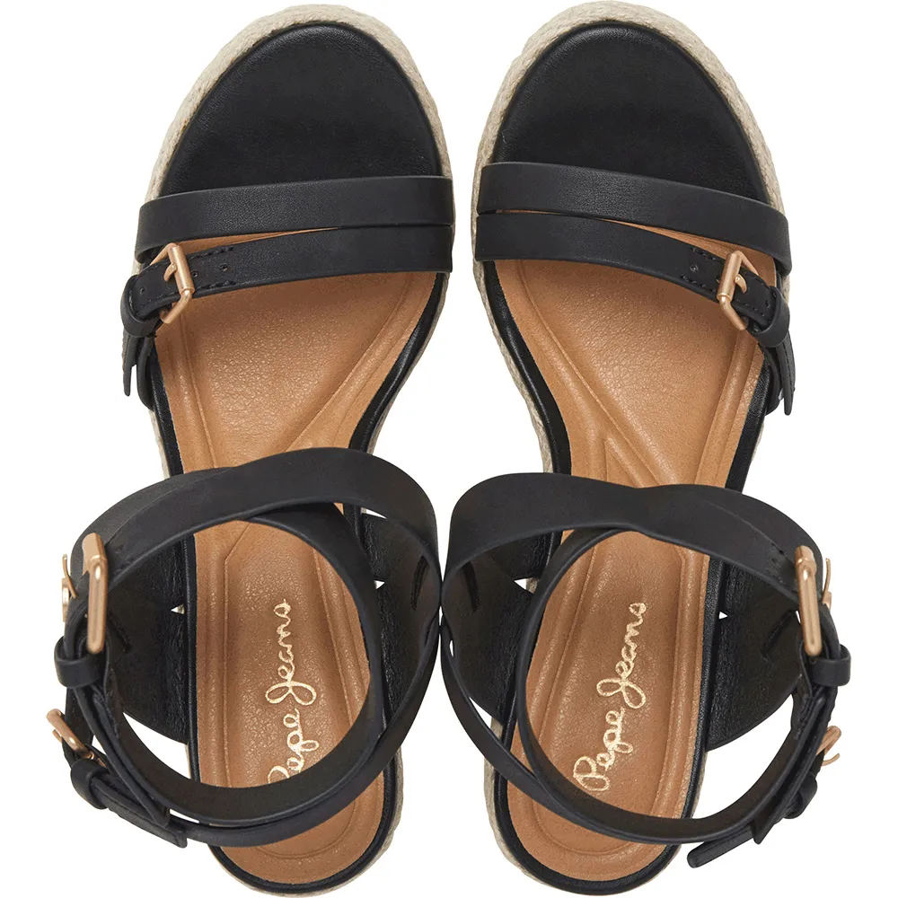 Босоножки Wayna Straps на высокой танкетке с несколькими ремешками, застежками на металлические пряжки, металлической булавкой-логотипом в виде монограммы «P» сбоку, танкетка, обтянутая натуральной джутовой веревкой, и резиновой подошвой.