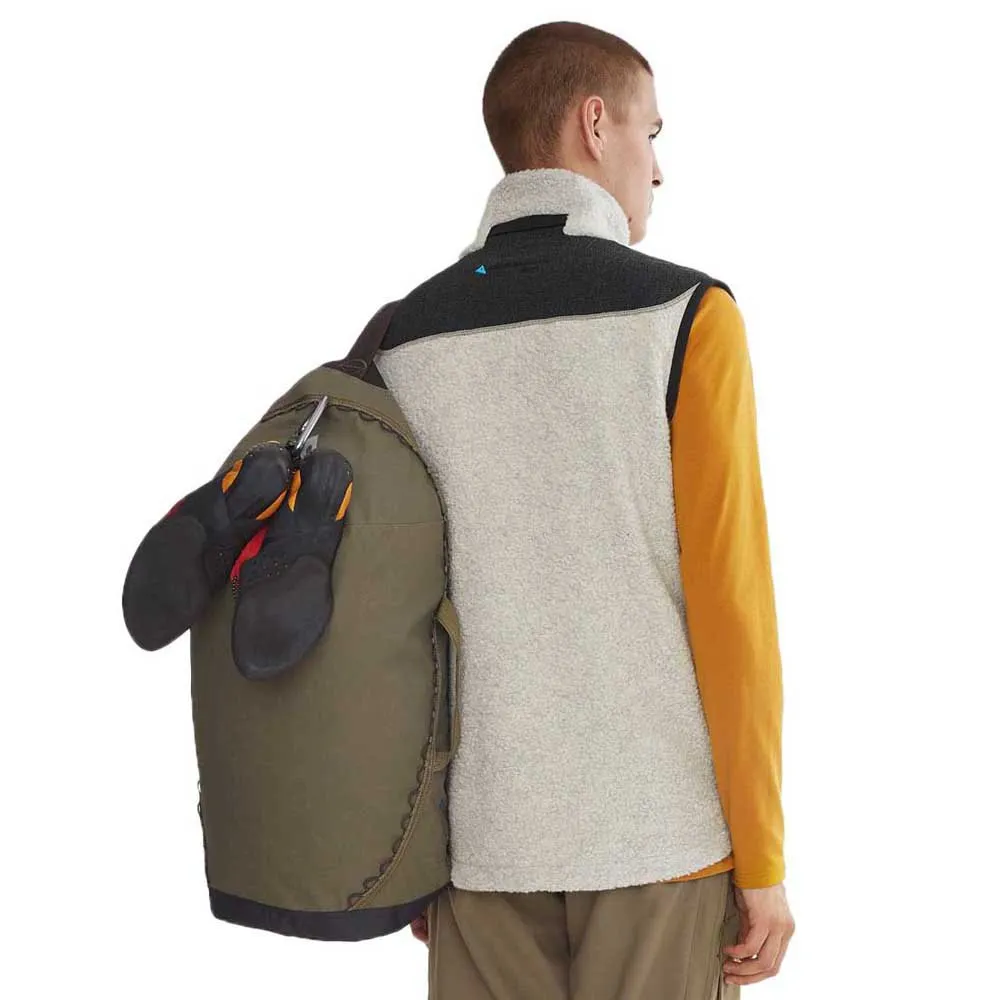 Шерстяной жилет с высоким ворсом, созданный для прохладных дней, изготовлен из смеси переработанной итальянской шерсти и арамидных армирующих нитей без фторуглеродов. Жилет Skoll Vest имеет воротник с мягкой внутренней подкладкой для повышенного комфорта. Молнии расположены таким образом, чтобы не соприкасаться с телом, а два кармана имеют тёплую и уютную подкладку, чтобы согреть руки при необходимости. Передняя молния не доходит до конца, чтобы избежать натирания, а концы воротника перекрываются, сохраняя тепло. Арамидные армирующие нити с эластичным волокном на плечах обеспечивают прочность и защиту от истирания рюкзаками и снаряжением. Края пройм усилены эластичной кромочной лентой.
