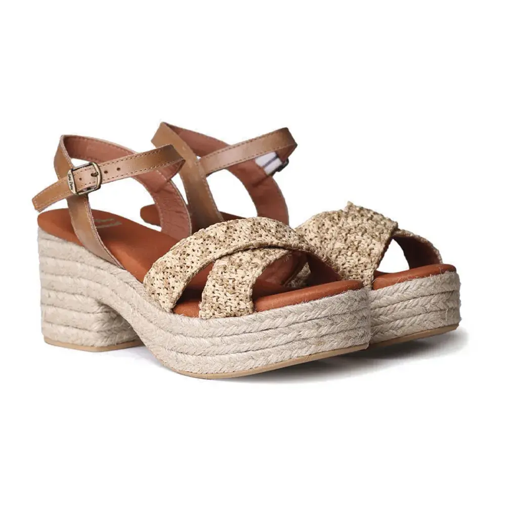 Эти женские эспадрильи из рафии с широким каблуком имеют открытый носок и пятку.