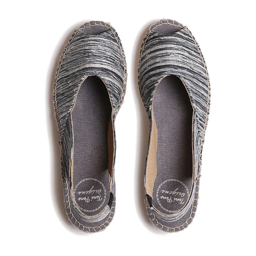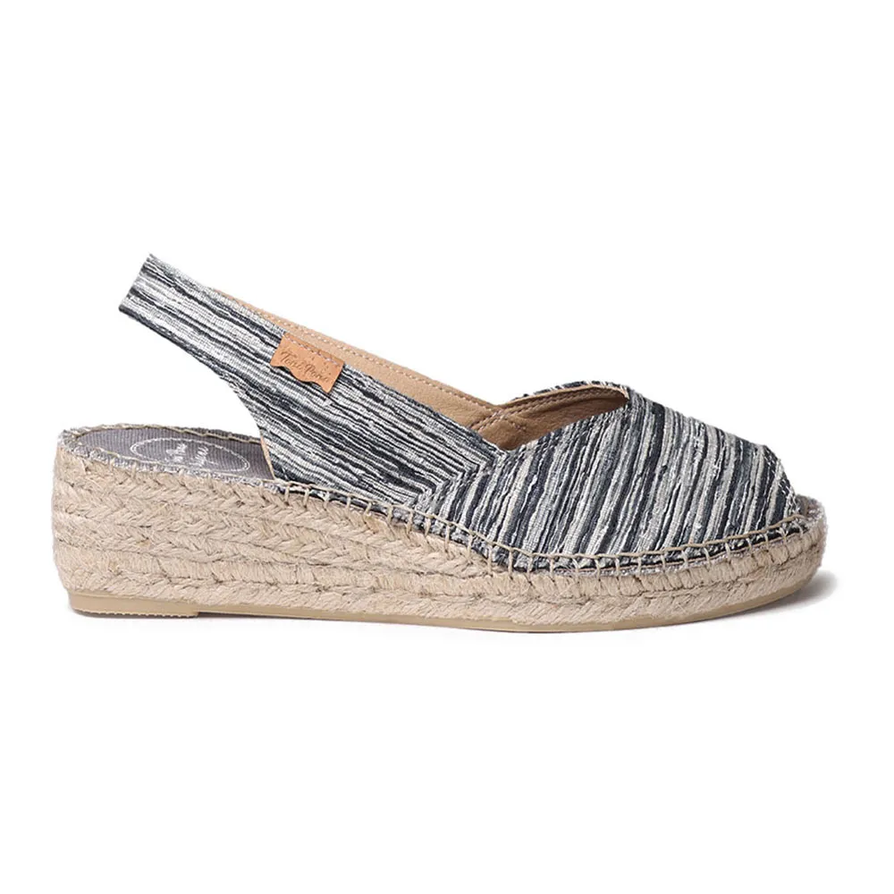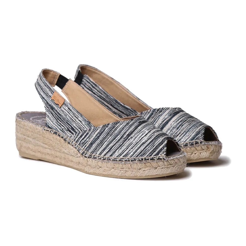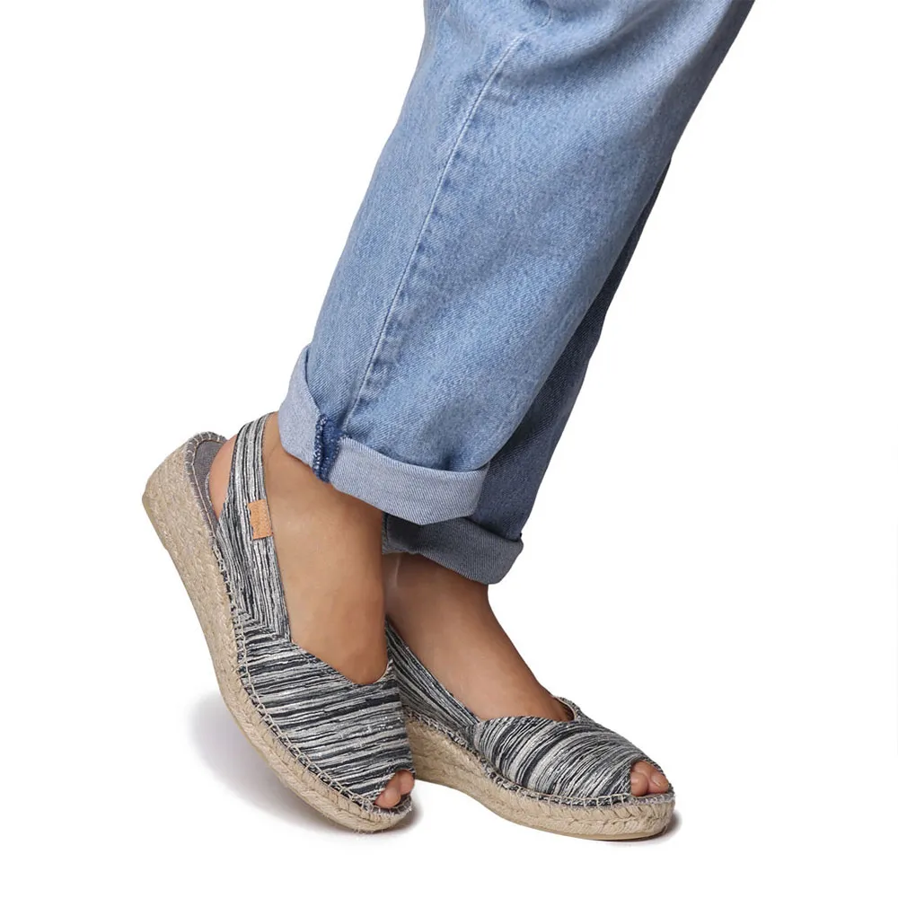 BERI RG — женские эспадрильи с открытым носком на танкетке, изготовленные из полосатой ткани с подкладкой из дышащего текстиля.