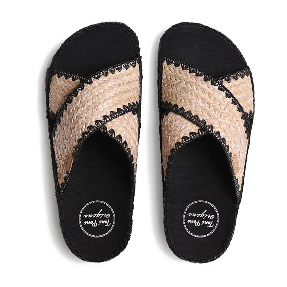 Эти плоские женские эспадрильи изготовлены из тканой бумажной ткани.