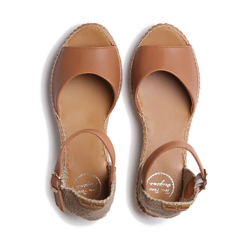 Эти открытые женские эспадрильи изготовлены из кожи однотонных цветов.
