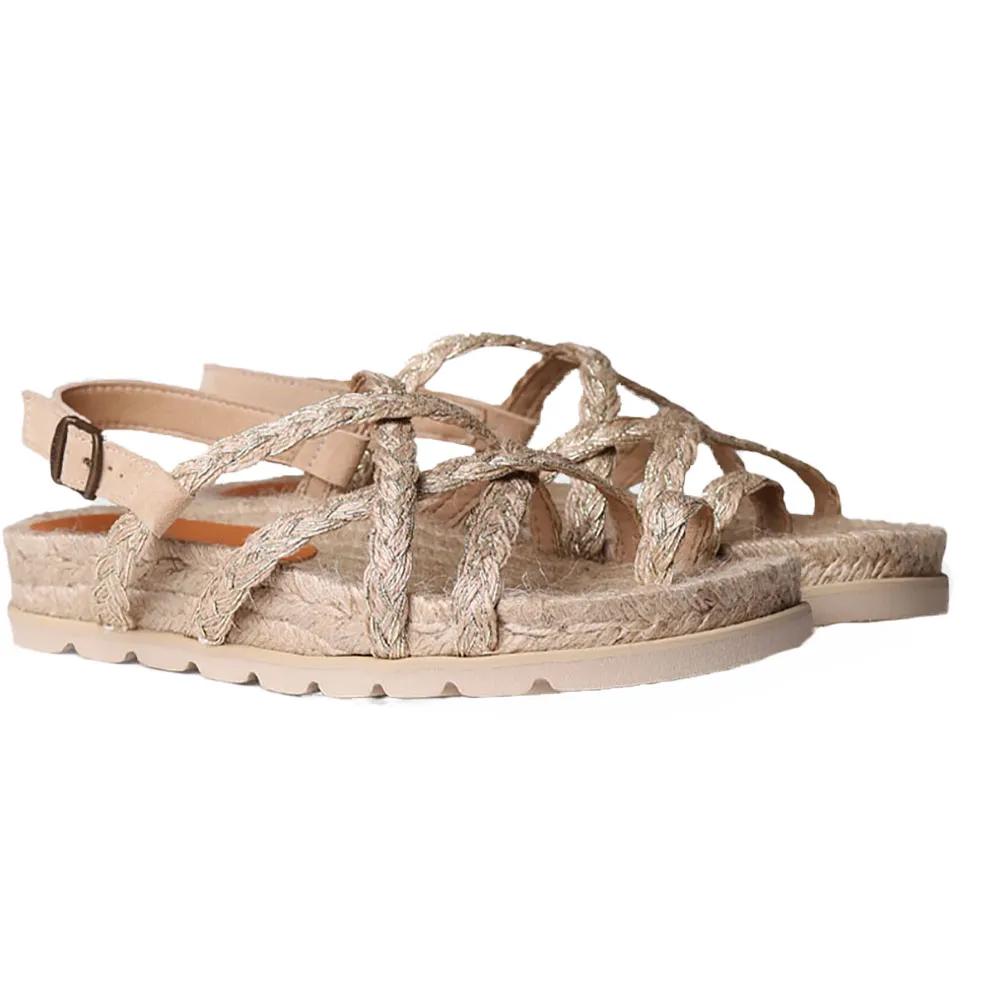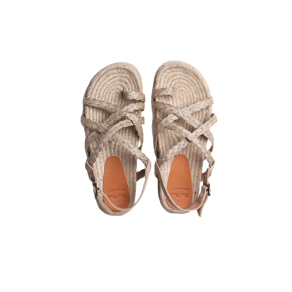 Эти плоские джутовые сандалии выполнены в натуральных цветах.