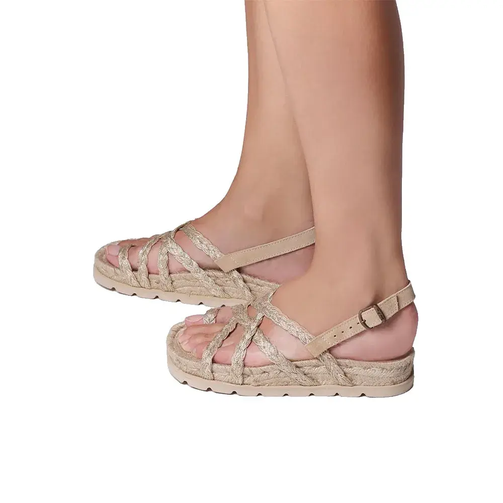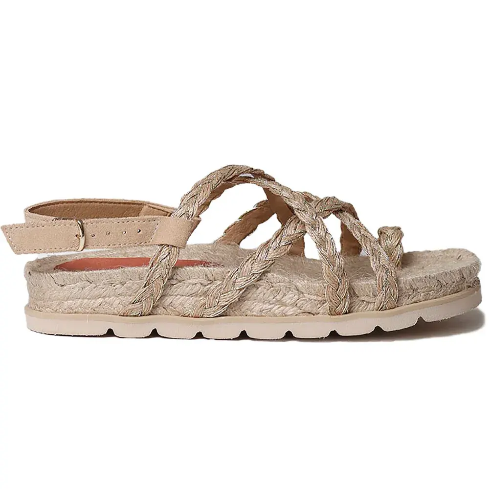Верхний ремешок изготовлен из джута, а основание подошвы — из резины.