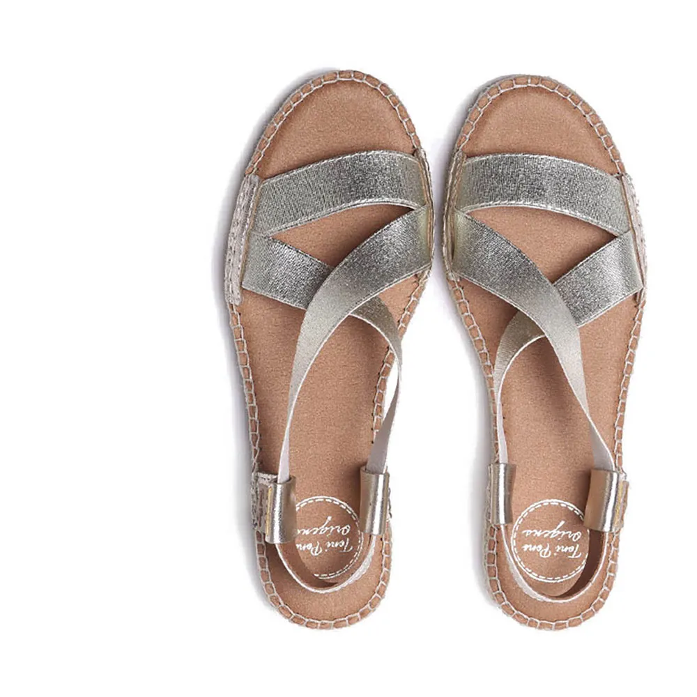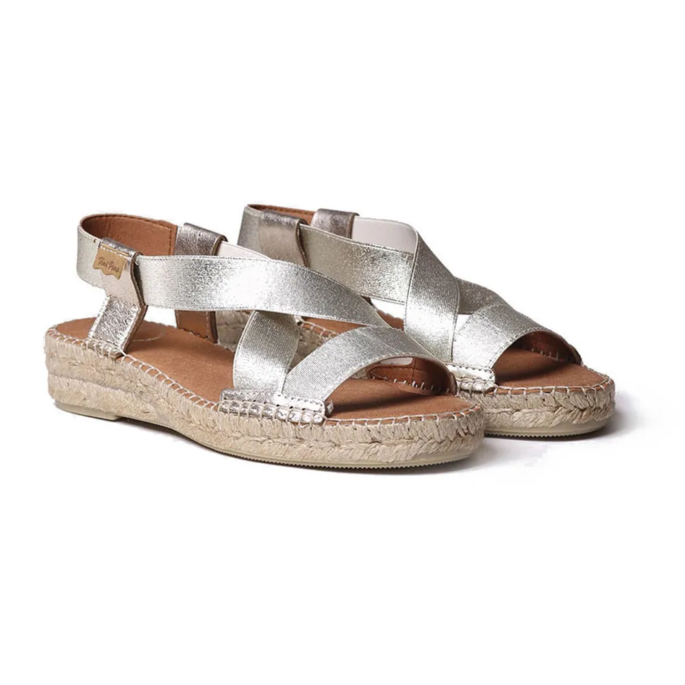 Эти женские эспадрильи изготовлены из эластичных металлических лент и кожи с дышащей текстильной подкладкой.