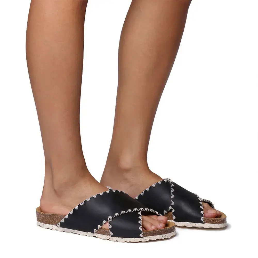 Эти женские сандалии типа BIO с перекрещенными ремешками изготовлены из кожи.