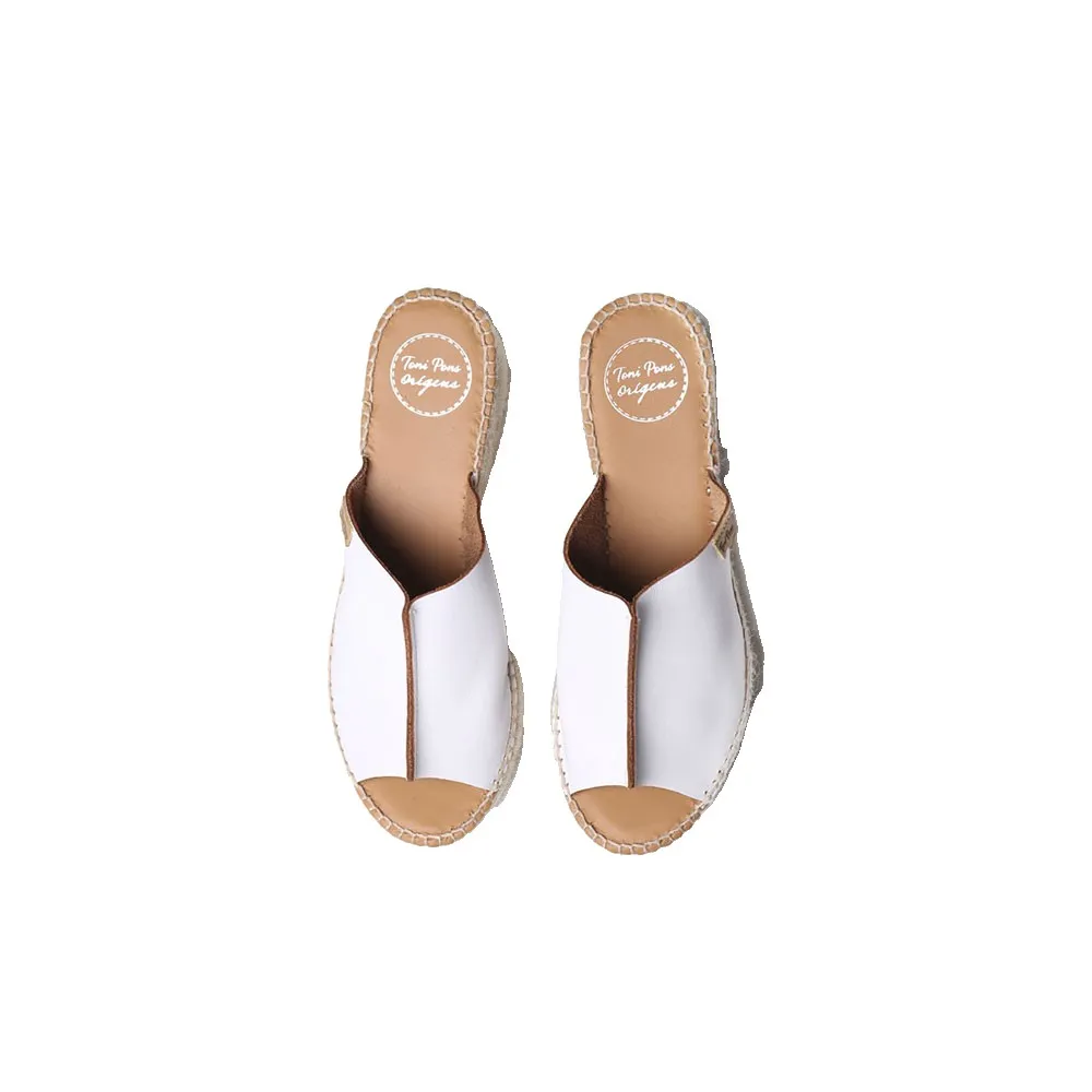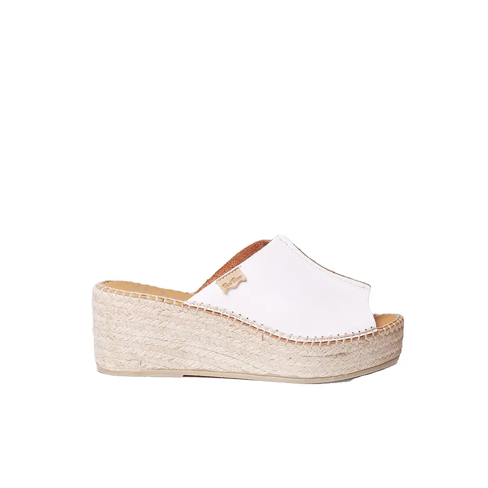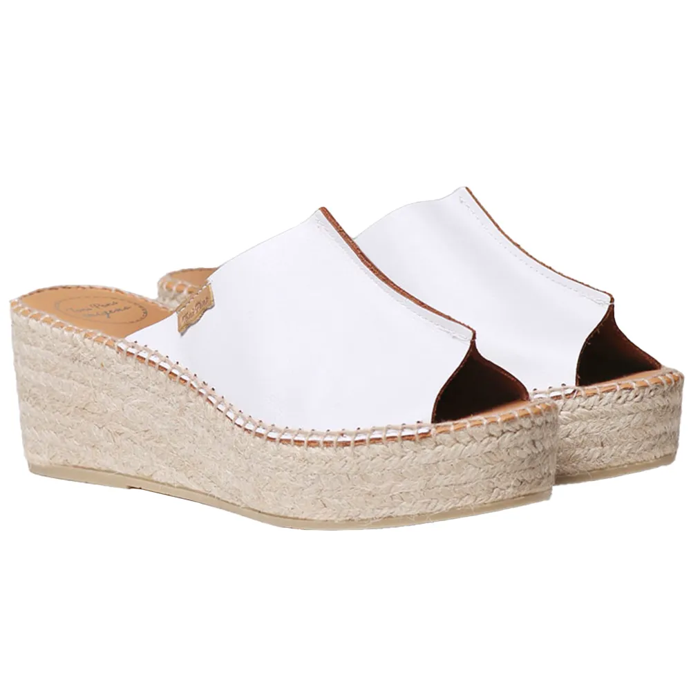 Эти эспадрильи на танкетке без задника изготовлены из кожи однотонных цветов.