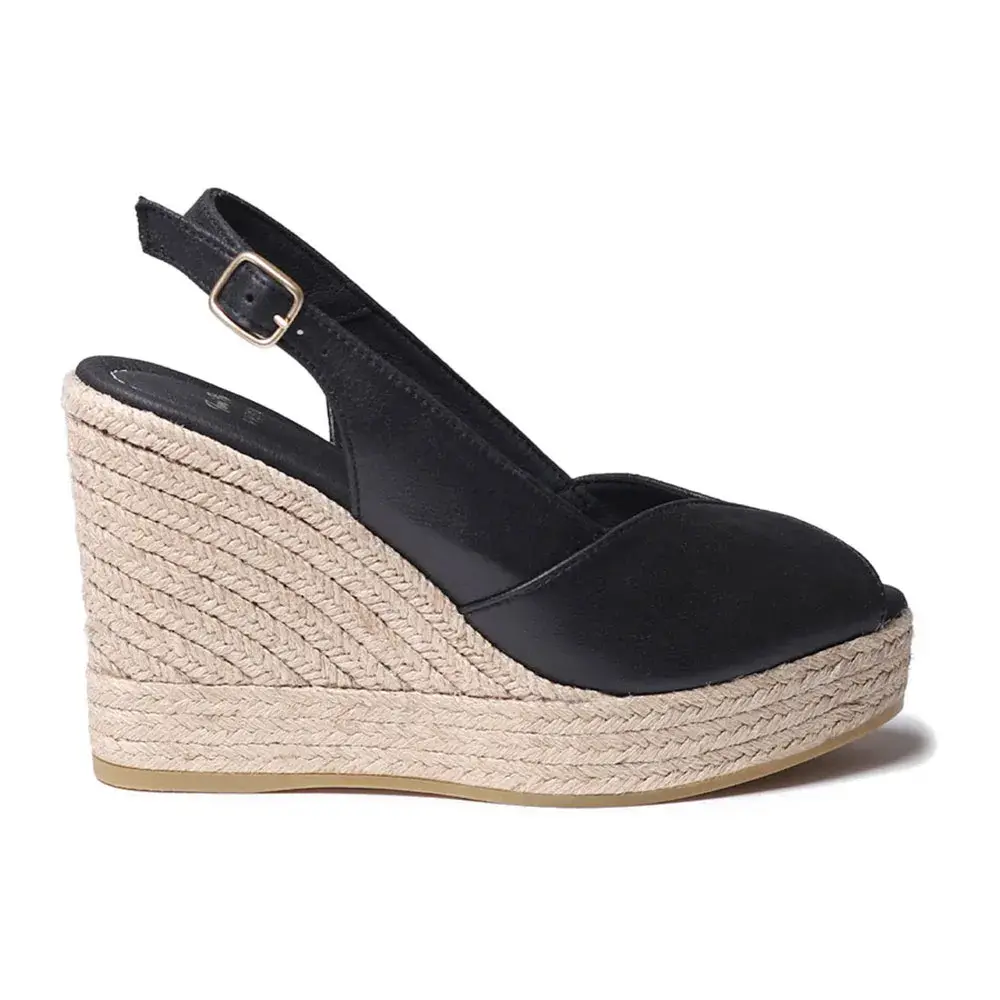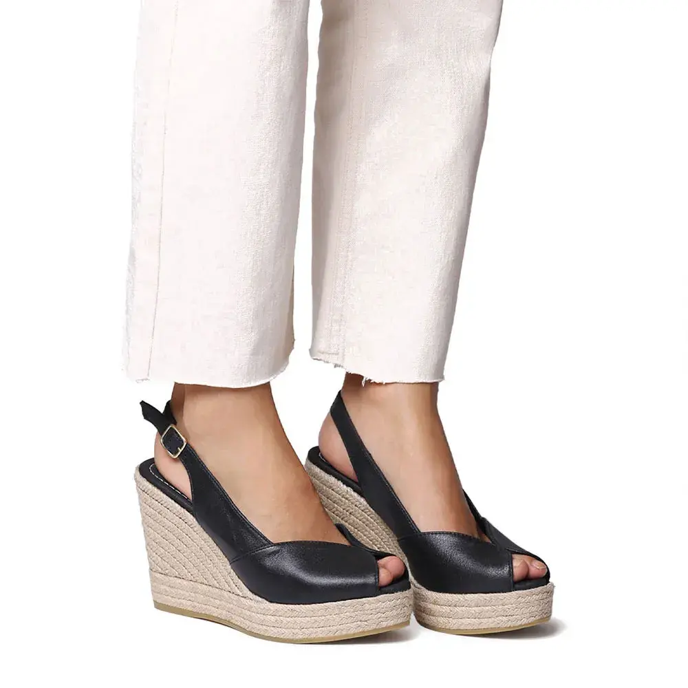 Эти эспадрильи с высоким открытым носком изготовлены из кожи однотонных цветов.