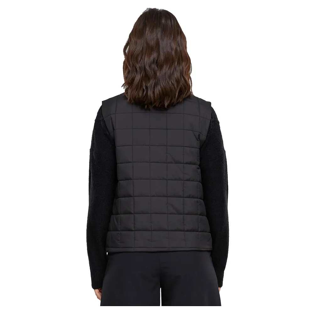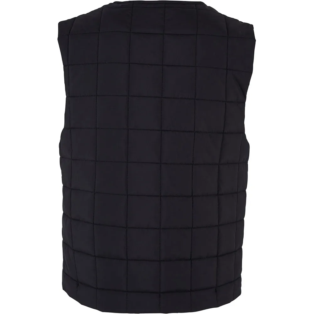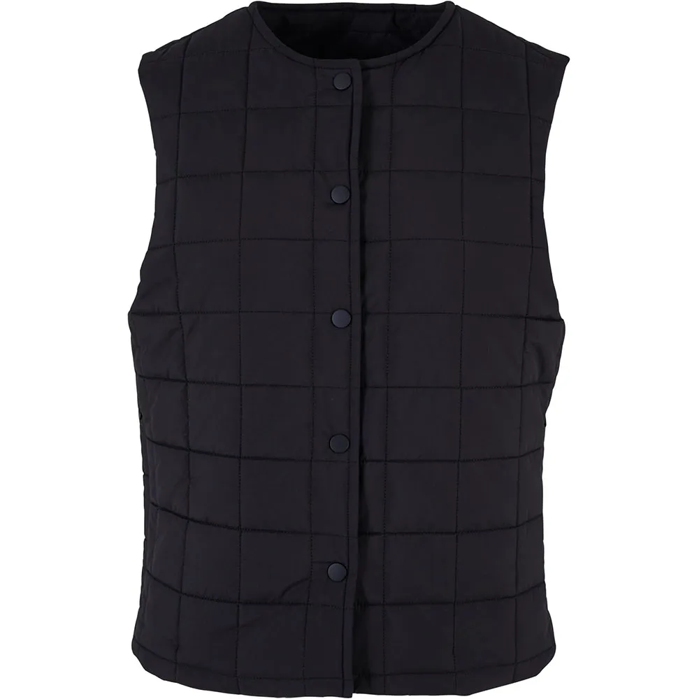 Женский стеганый жилет простеган небольшими квадратами и слегка утеплён, что обеспечивает ему устойчивость. Свободный крой идеально подходит для этого. Жилет легко застёгивается на кнопку и имеет круглый вырез. Внешний материал – прочный терилен, внутренняя часть – мягкая тафта.