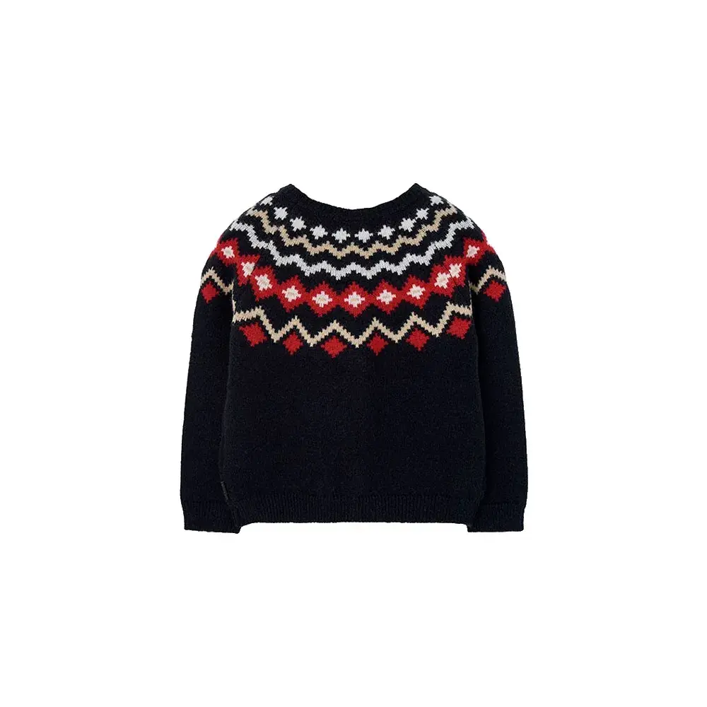 Вязаный джемпер для мальчиков черного цвета с геометрическим принтом, идеально подходит для осенне-зимнего сезона.